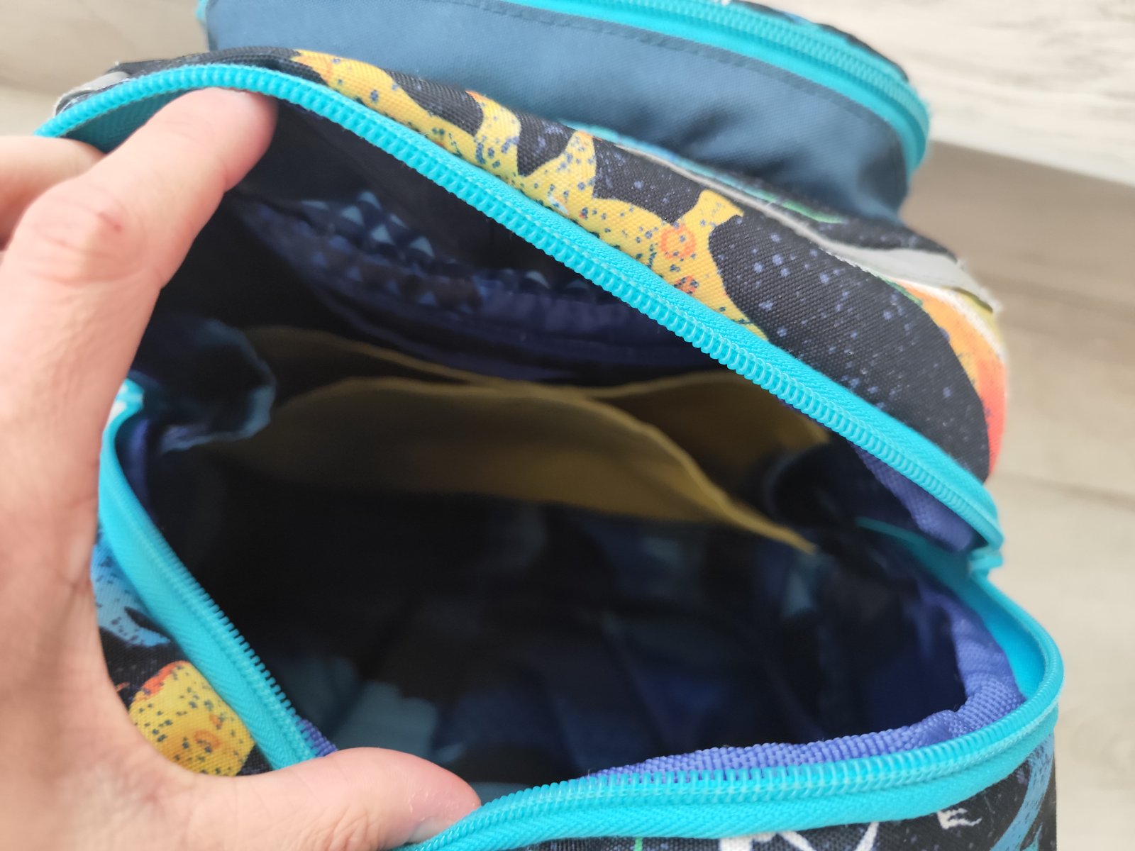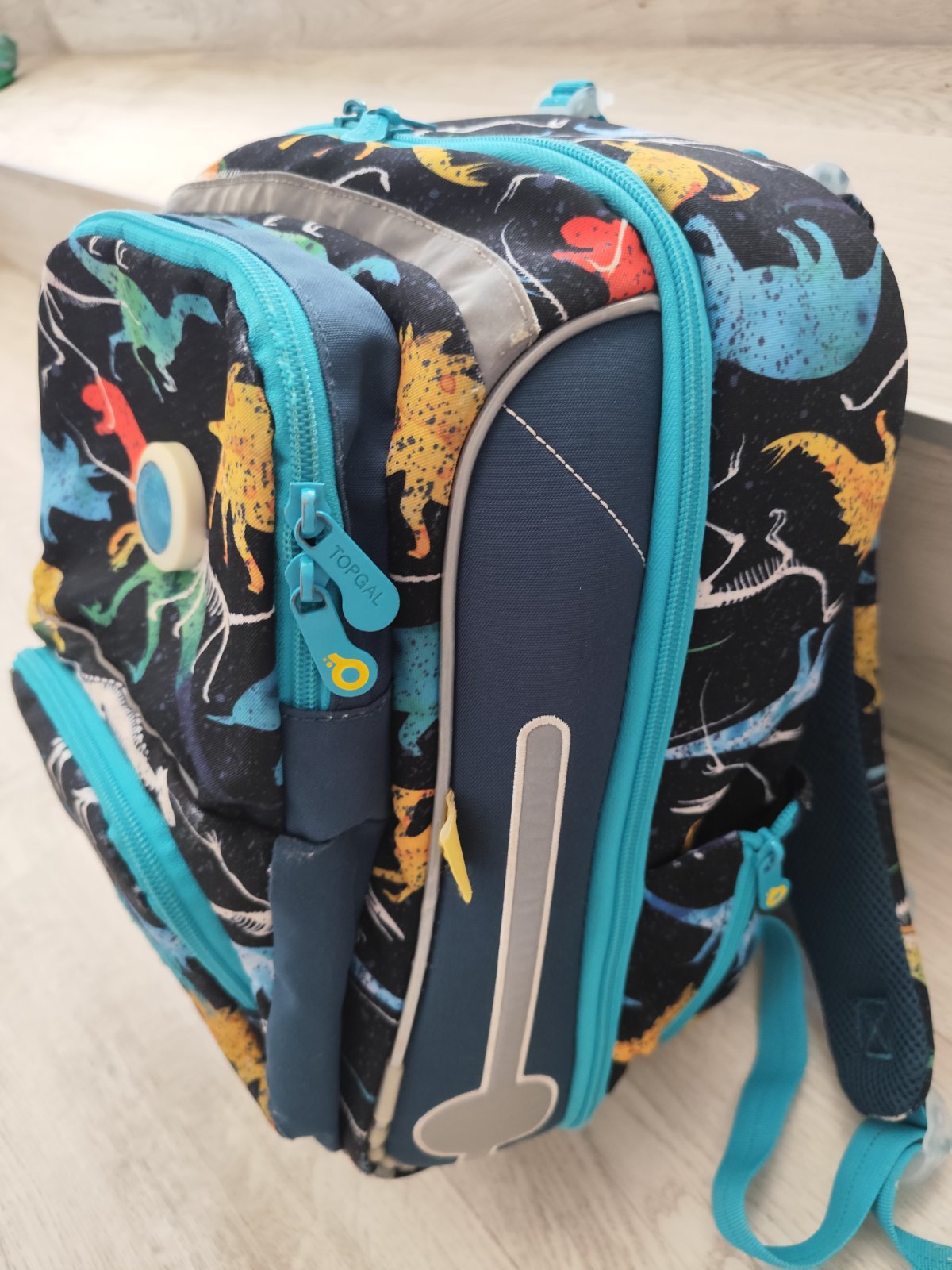 Taska bola pouzivana 2 roky, urcite este posluzi je pekna, mensie nedostatky vodiet pri reflexnej casti, inak vsetko funkcne, aj svetielko je funkcne. Dobre clenenie vnutri, vhodna pre nizsich prvakov. cena 20 eur, os. odber BA alebo paketa