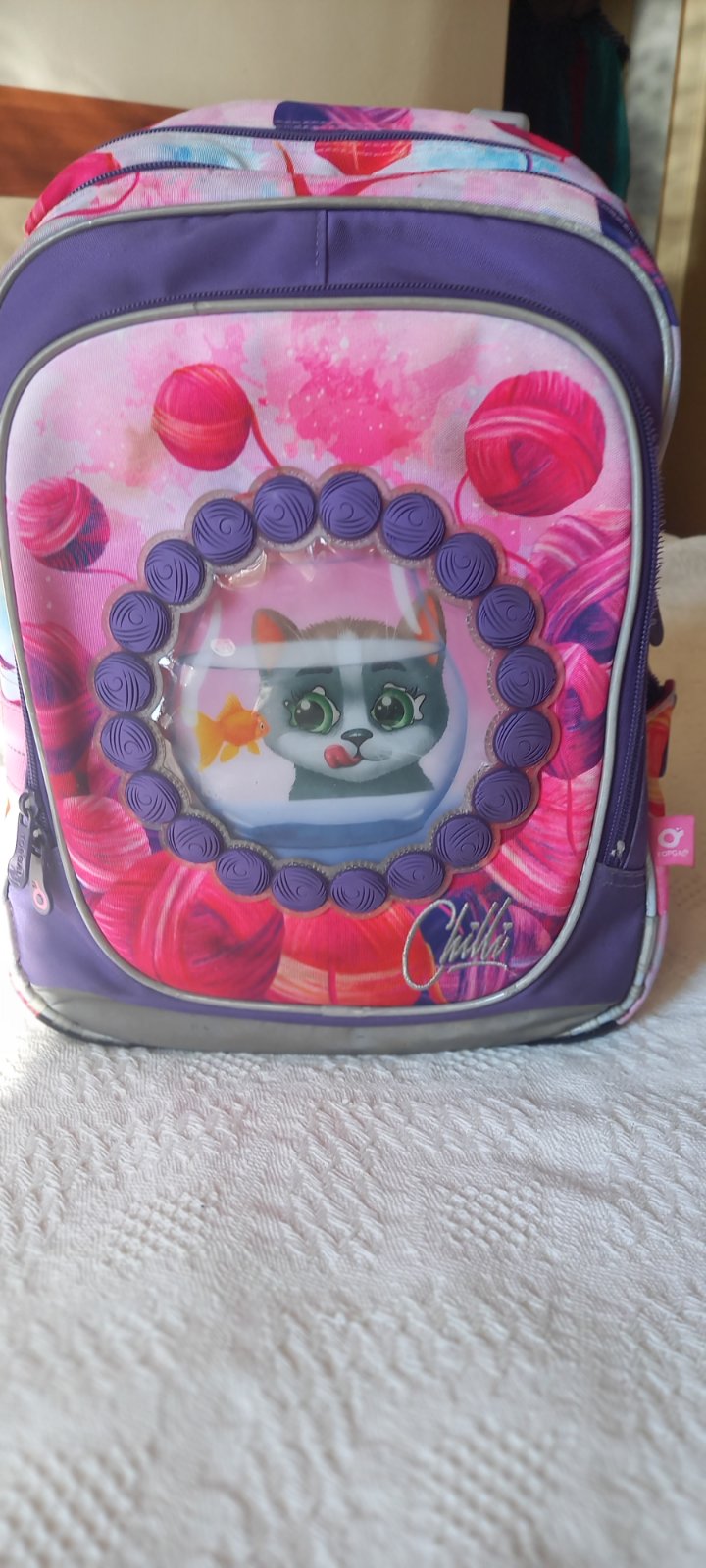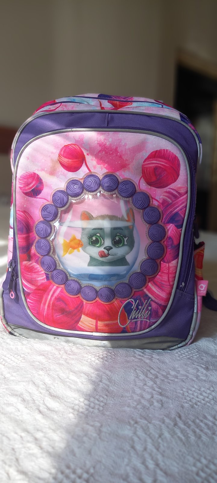 Školská taška TOPGAL používaná počas prvého stupňa ZŠ, no stále je vo vynikajúcom stave. Všetky zipsy fungujú, takmer žiadne osuchanie. Vymeniteľné obrázky.