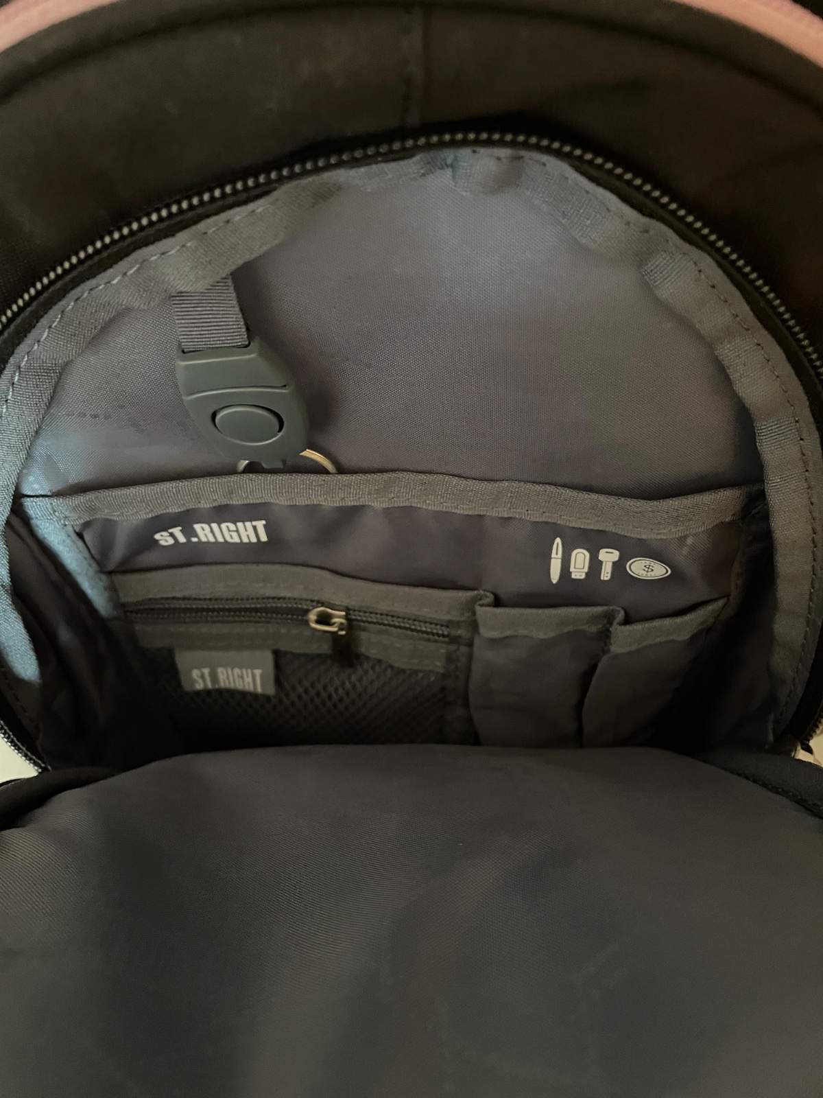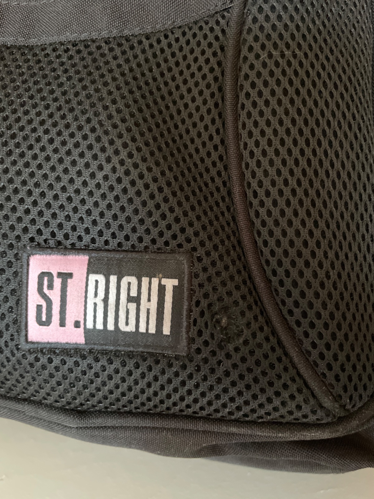 Predam (rocnu) nosenu tašku znacky St.right, v dobrom stave, priestranna, vystuzeny chrbat, male poskodenia- dierocka vpredu a zlomena spona vid foto na konci
