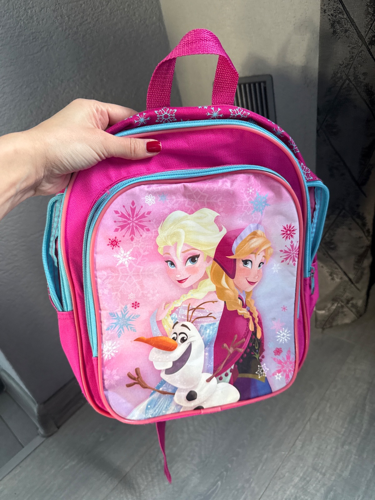 Batoh bol noseny veľmi krátko, nemá funkčné poškodenia. Vystužená chrbtová časť, nastaviteľné popruhy, veľmi ľahká na nosenie. Praktické priehradky. Reflexné prvky. Frozen Elza Anna