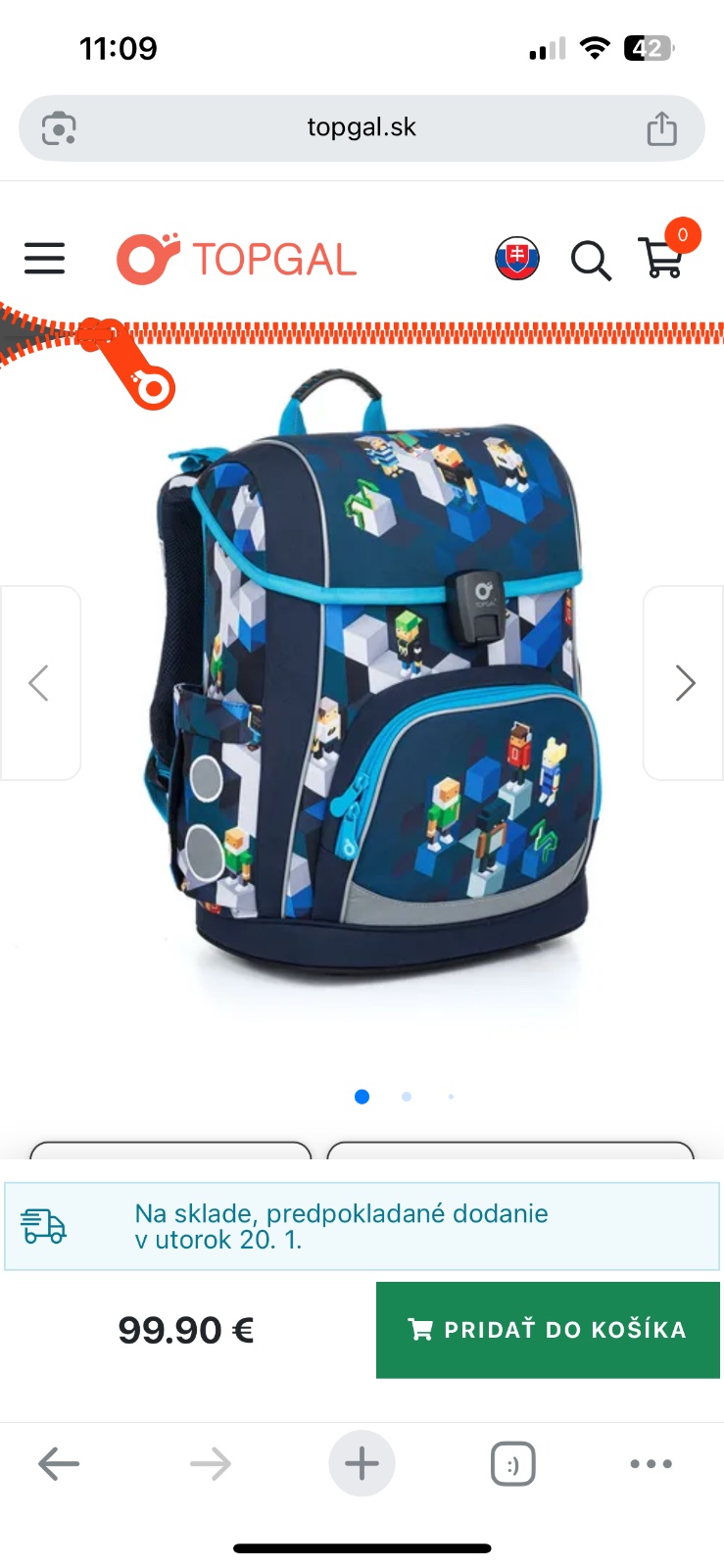 Predám ľahkú aktovku / školskú tašku Topgal - Minecraft