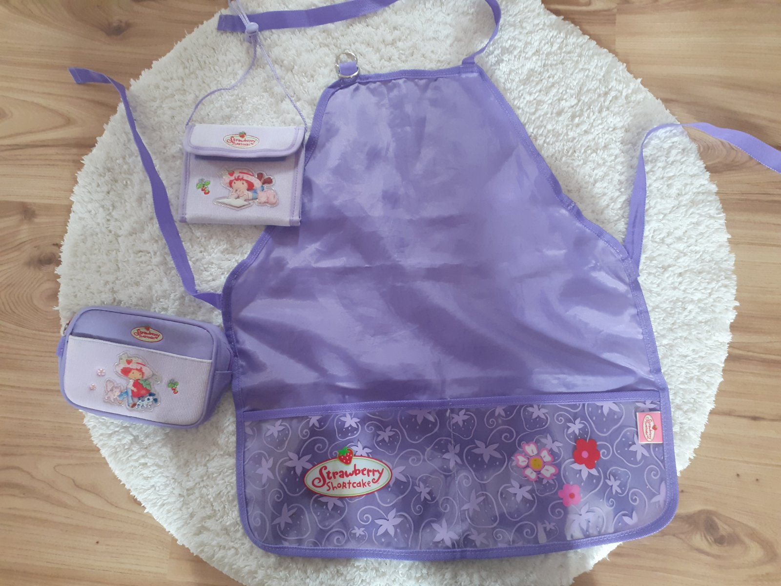 Nenosená zásterka pre deti z motívom HELLO KITTY. Zn. SANRIO Na predu sú aj 3 vrecká,na bokoch gumky . Jednoduché obliekanie...len prevlečiete cez hlavu 🙂 Lahko umývatelná ,je to také pogumované. D...