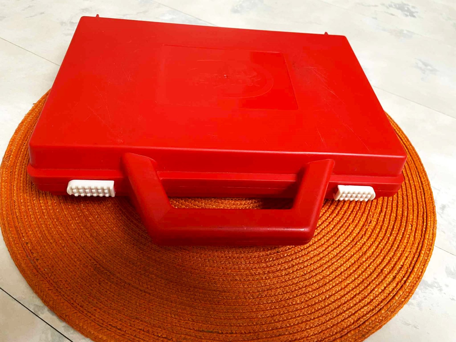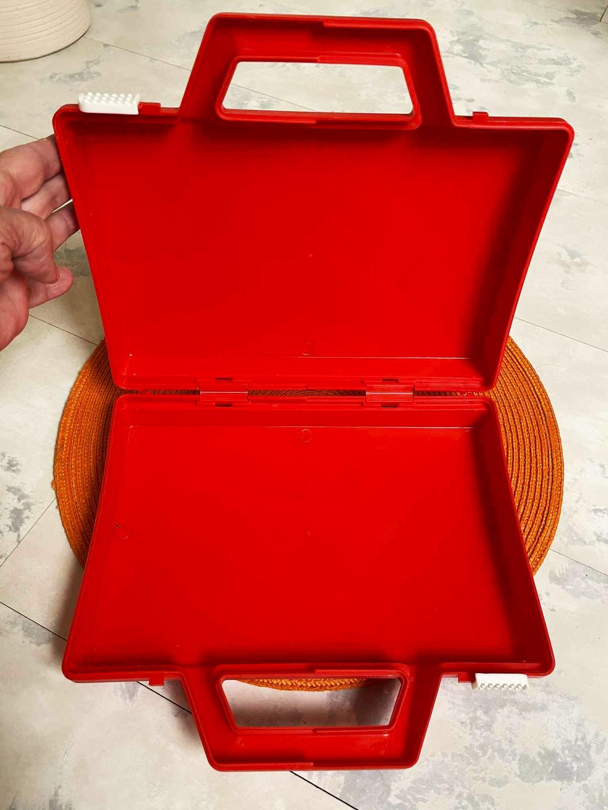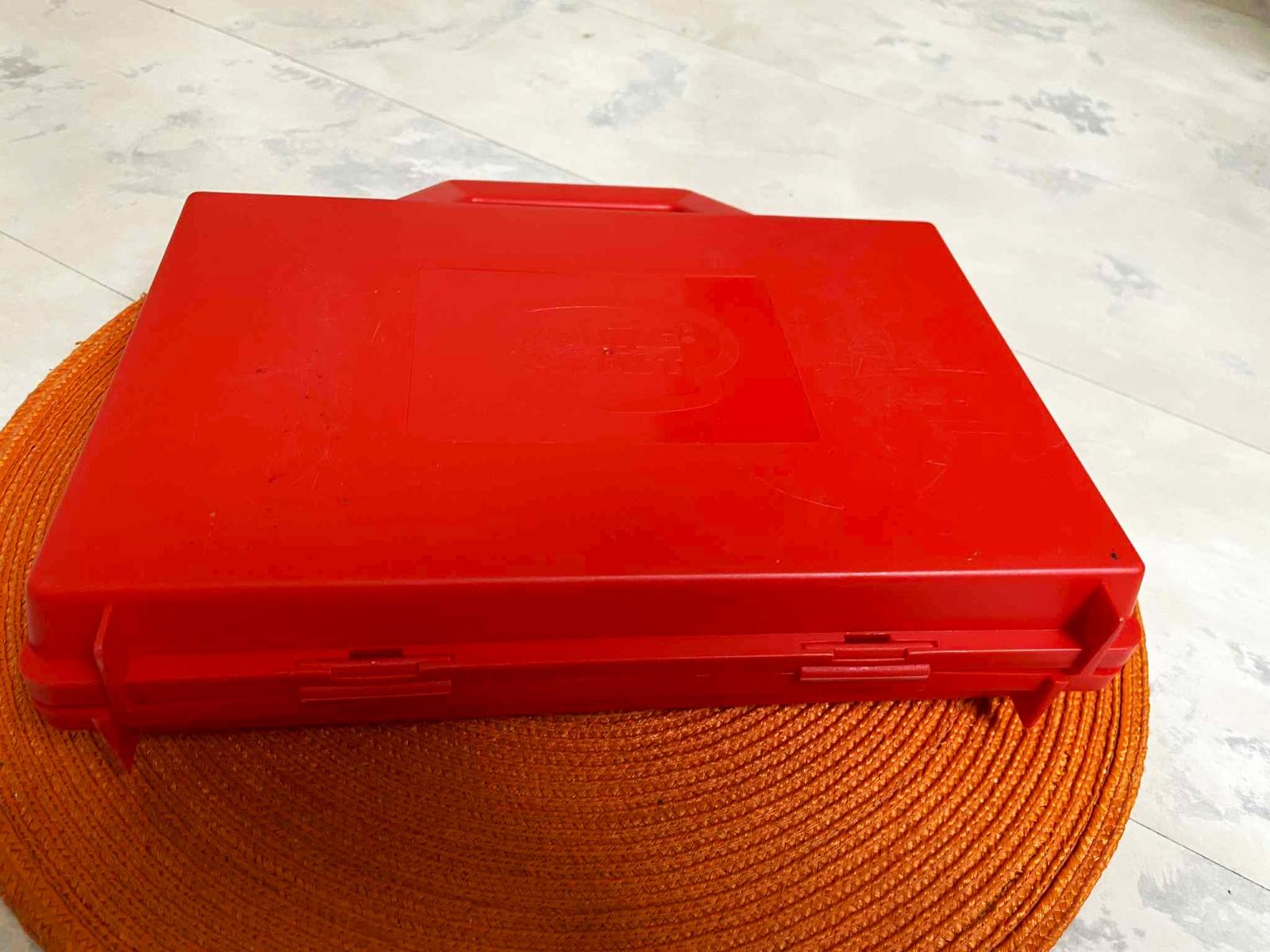 plastový zachovalý kufrík ,výborne sa zatvára a fixuje,26 x 24 cm,vnútro = 26 x 16 cm