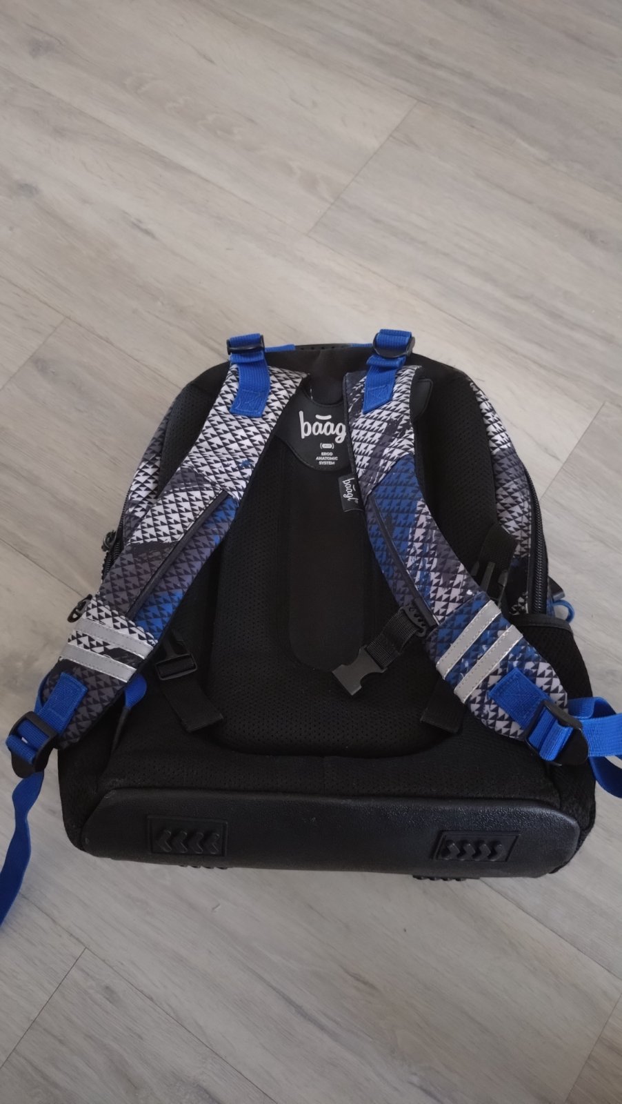 Predám školskú tašku značka Baagl. Používaný stav,bežné známky nosenia (ošuchnutia,zadrapnutia). Okrem hrudnej pracky ja plne funkčná. Len osobný odber Bratislava. Úplne nastaviteľné ramenné, prsné a bočné kompresné popruhy na optimálne prispôsobenie postave. Tri samostatne uzatvárateľné komory s vnútorným organizérom.Predná komora batoha obsahuje praktický organizér a tiež pútko s karabínkou na zavesenie kľúčov. Bočné kapsy napríklad na fľašu. Reflexná prvky na popruhoch.