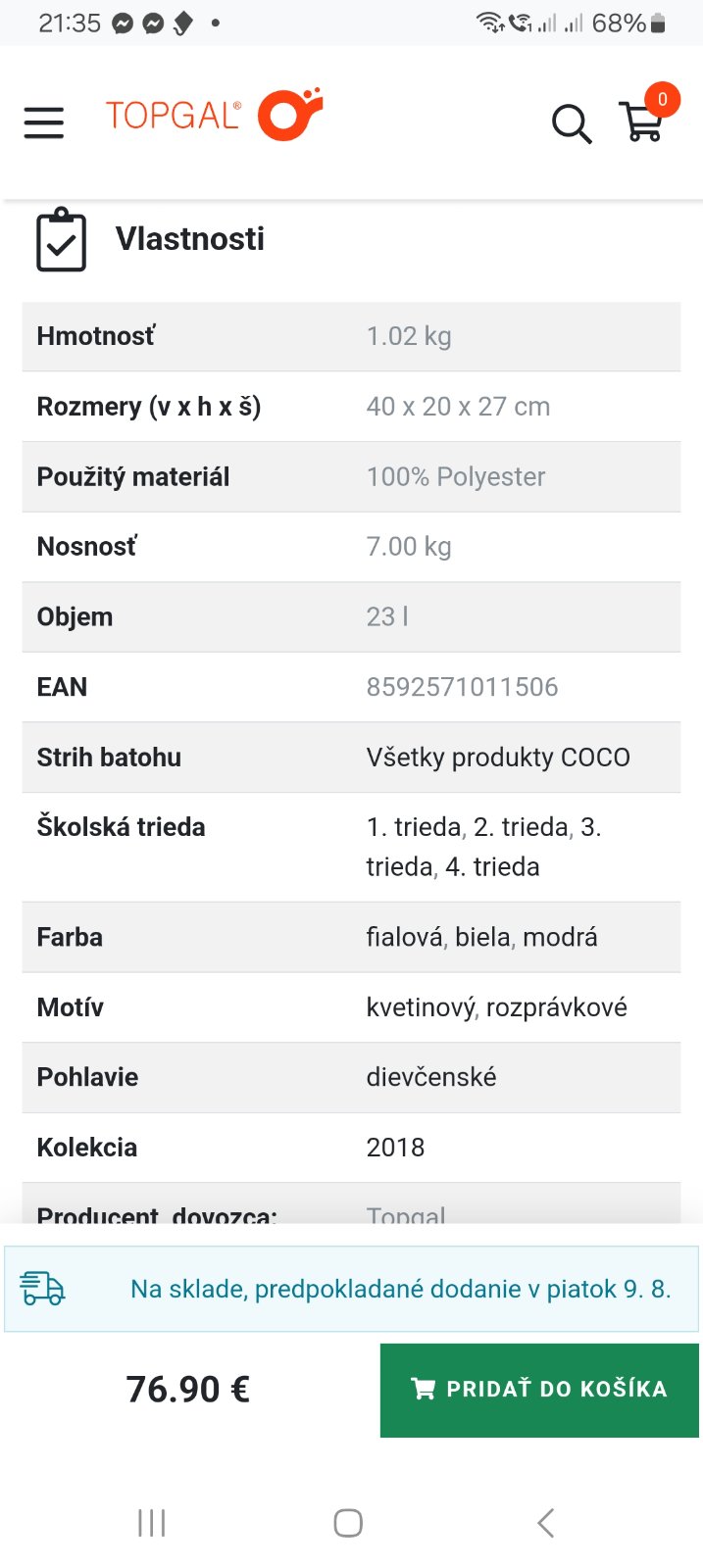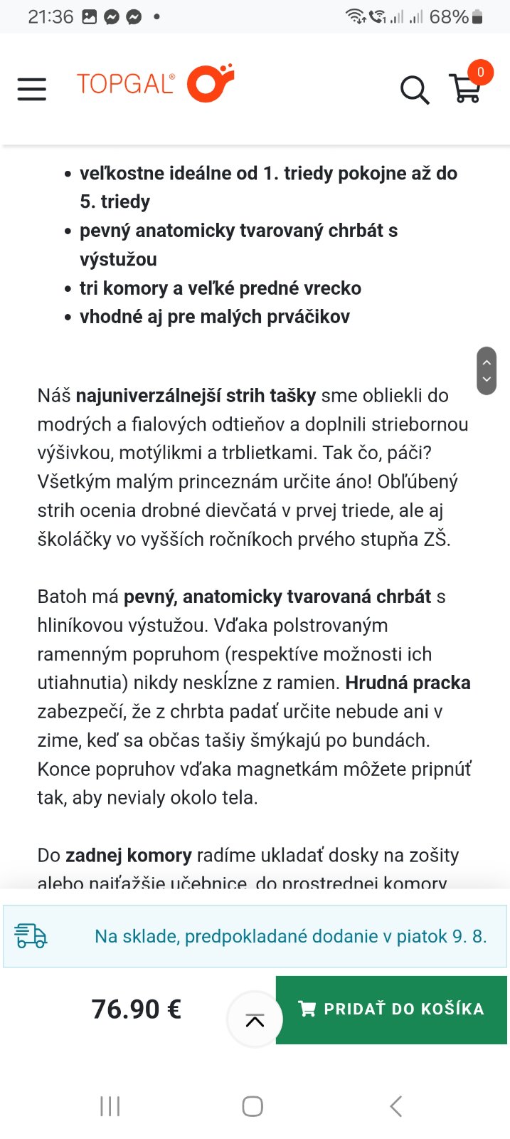 Predávame 2 kvalitné školské tašky zn. Topgal, bežné známky používania. Predaj spolu aj jednotlivo. Informácie k taške na stránke www.topgal.sk.