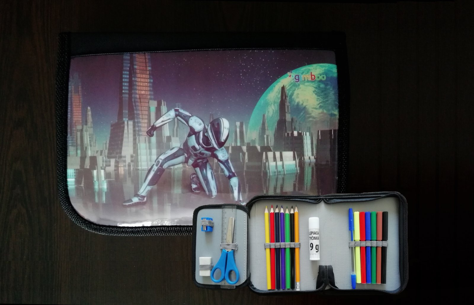 Školský 1 zipsový (1-poschodový) peračník s náplňou s motívom robota. Peračník má jednu priehradku a jednu vnútornú klopu s rozvrhom hodín. Je ideálny pre prvý stupeň ZŠ.
