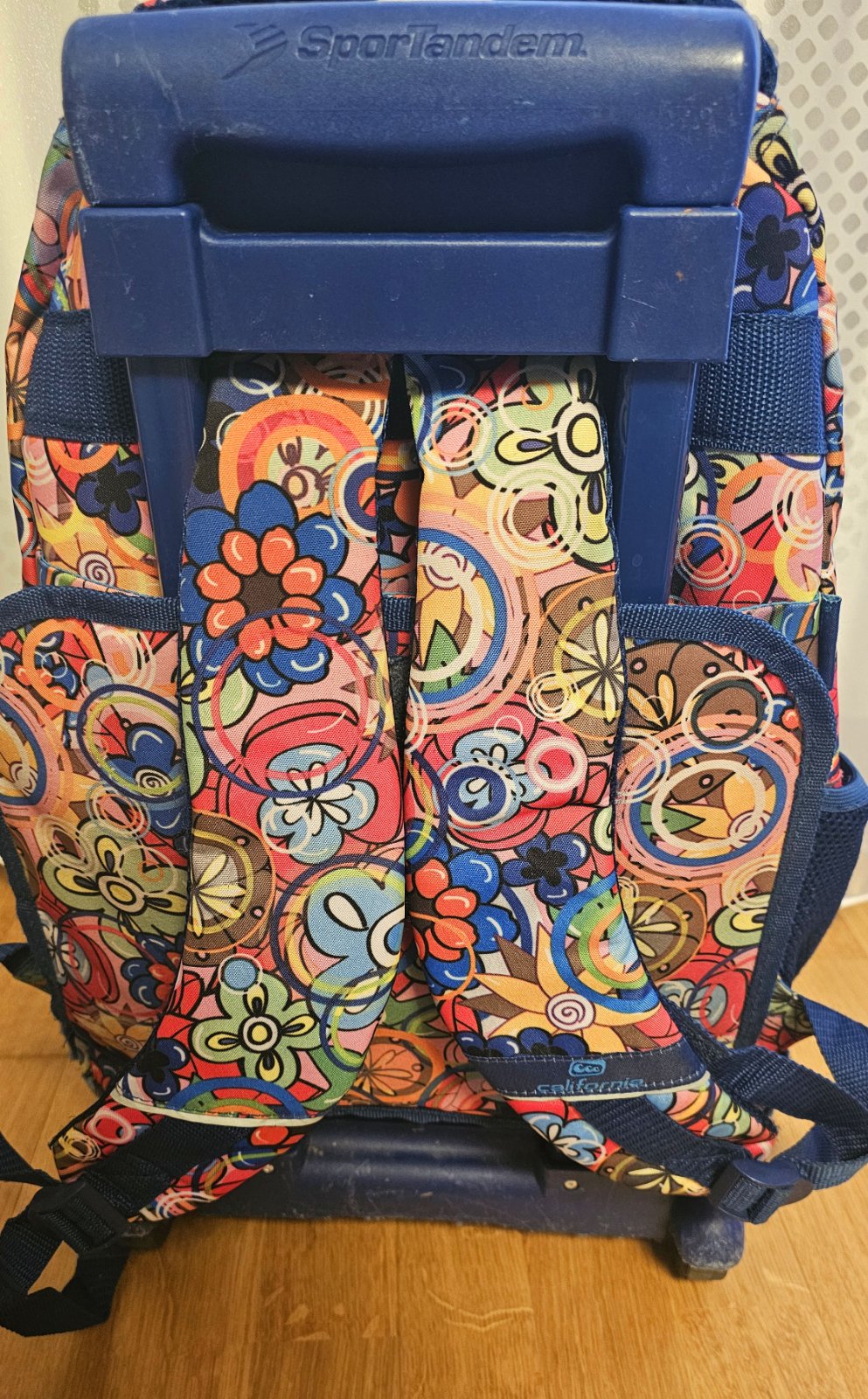 Výsuvná tyč- reflexné prvky- vodeodolný materiál. Výška 53 cm, s vysunutou rukoväťou cca 86 cm , šírka 36 cm, hĺbka 30 cm. zn. California.