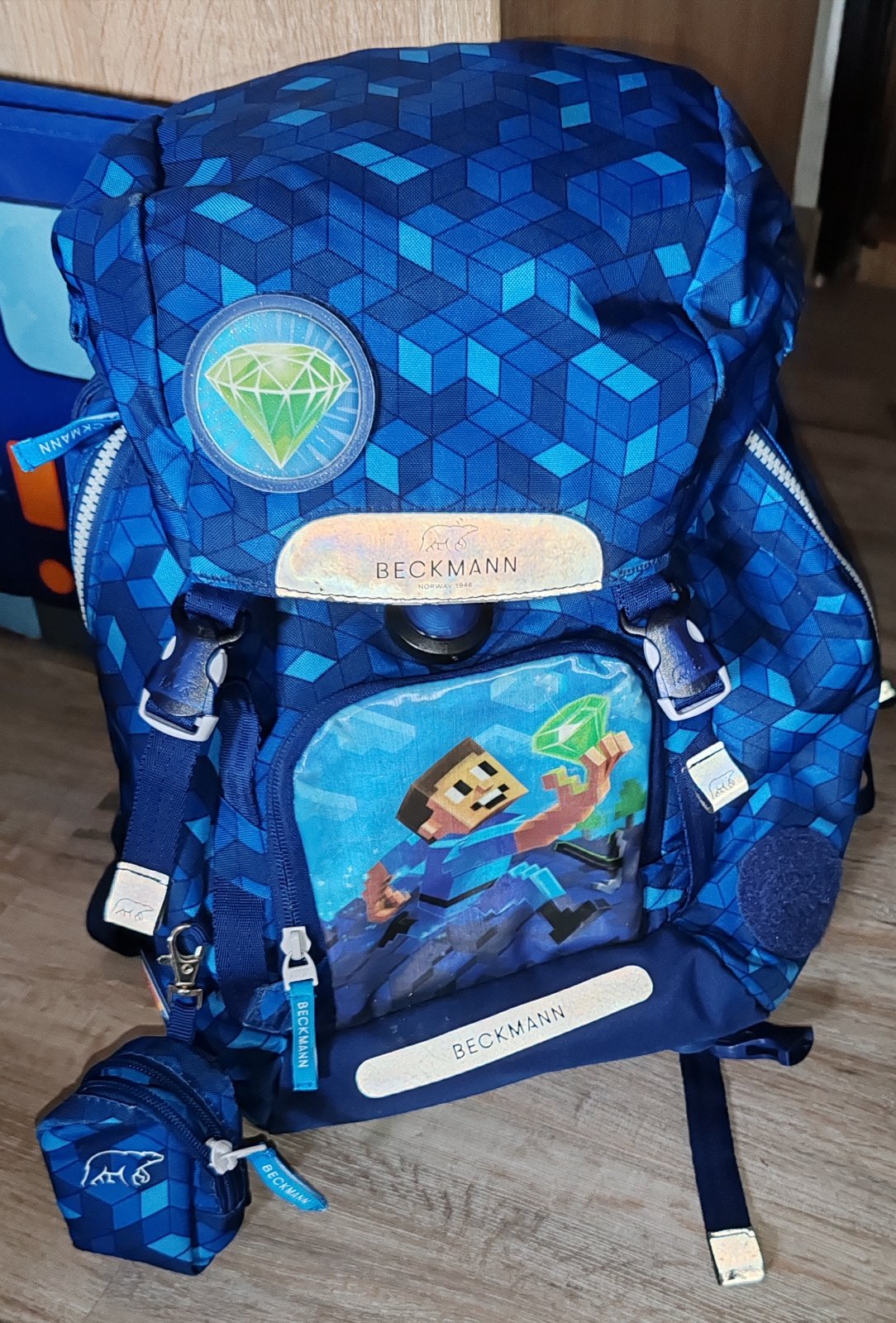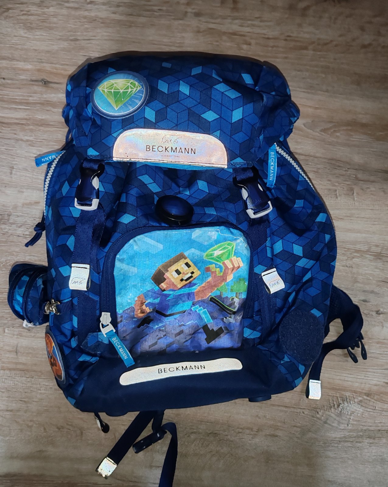 Školský batoh Beckmann je vhodný pre chlapcov v prvej až tretej triede základnej školy. Motív batohu pripomína minecraftový svet, chlapec bežiaci s diamantom v ruke je vyobrazený na prednom vrecku. Dá sa ale plne zakryť, pretože je predná kapsička otáčacia. Jednokomorový batoh s vnútorným členením má objem 22l a ponúka celú škálu vychytávok, ktoré Vám predstavíme v prehľadnom popise: