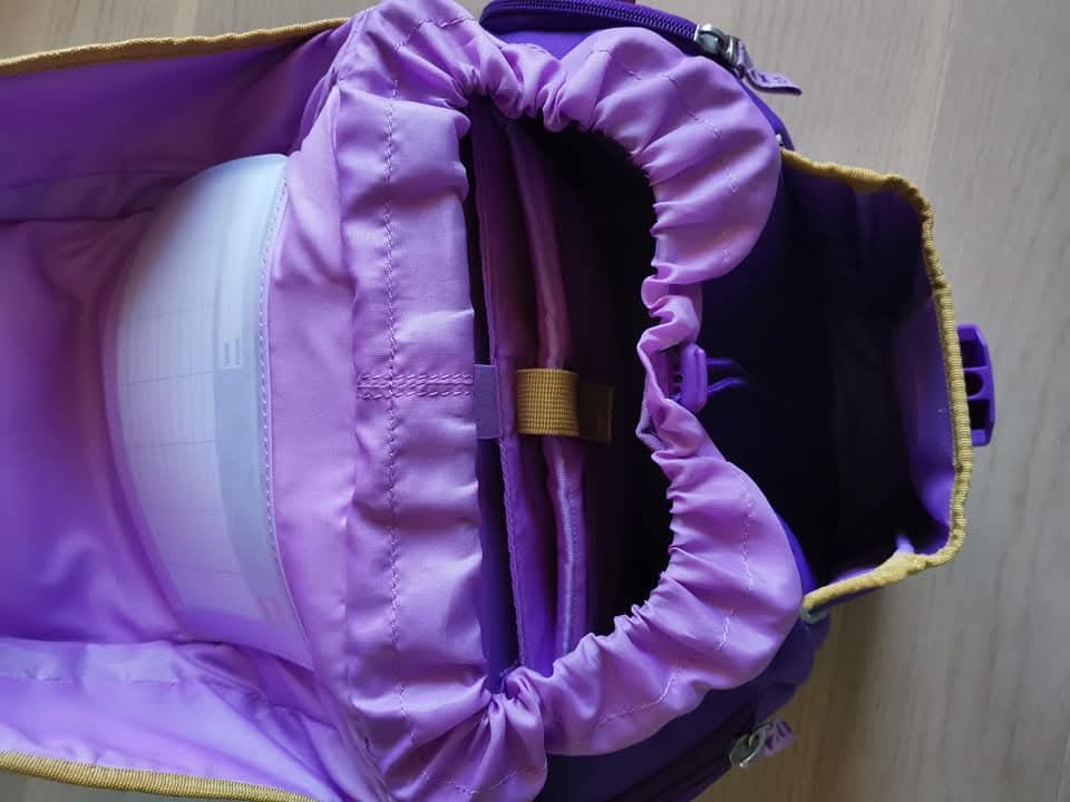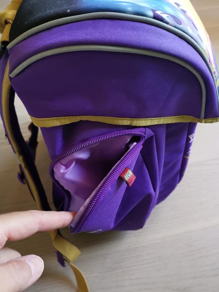 Po bokoch priečinky na fľaše, na zadnej strane skrytá peňaženka, vo vnútri množstvo priečinkov, nepoužitá menovka a rozvrh. Reflexné prvky pre vyššiu bezpečnosť. Popruhy sa dajú zafixovať, aby sa nešmýkali z ramien dolu. Pekný, zachovalý stav.
