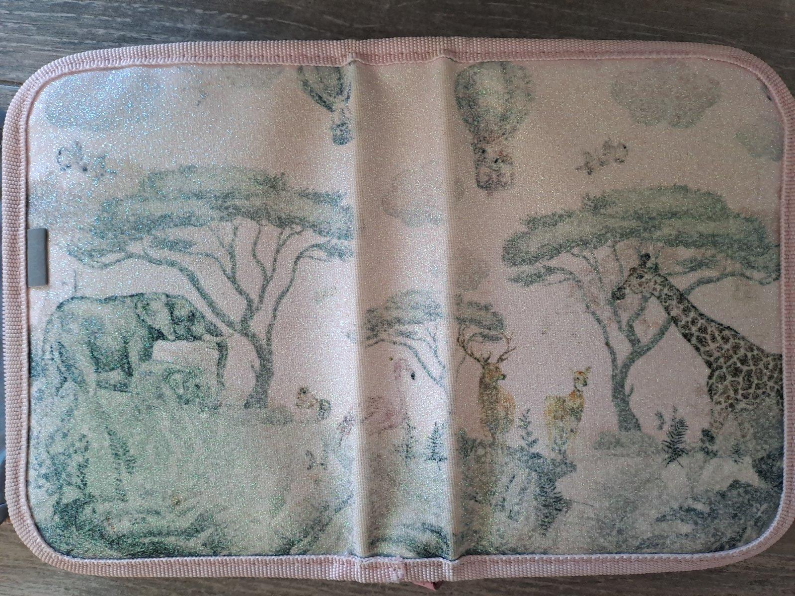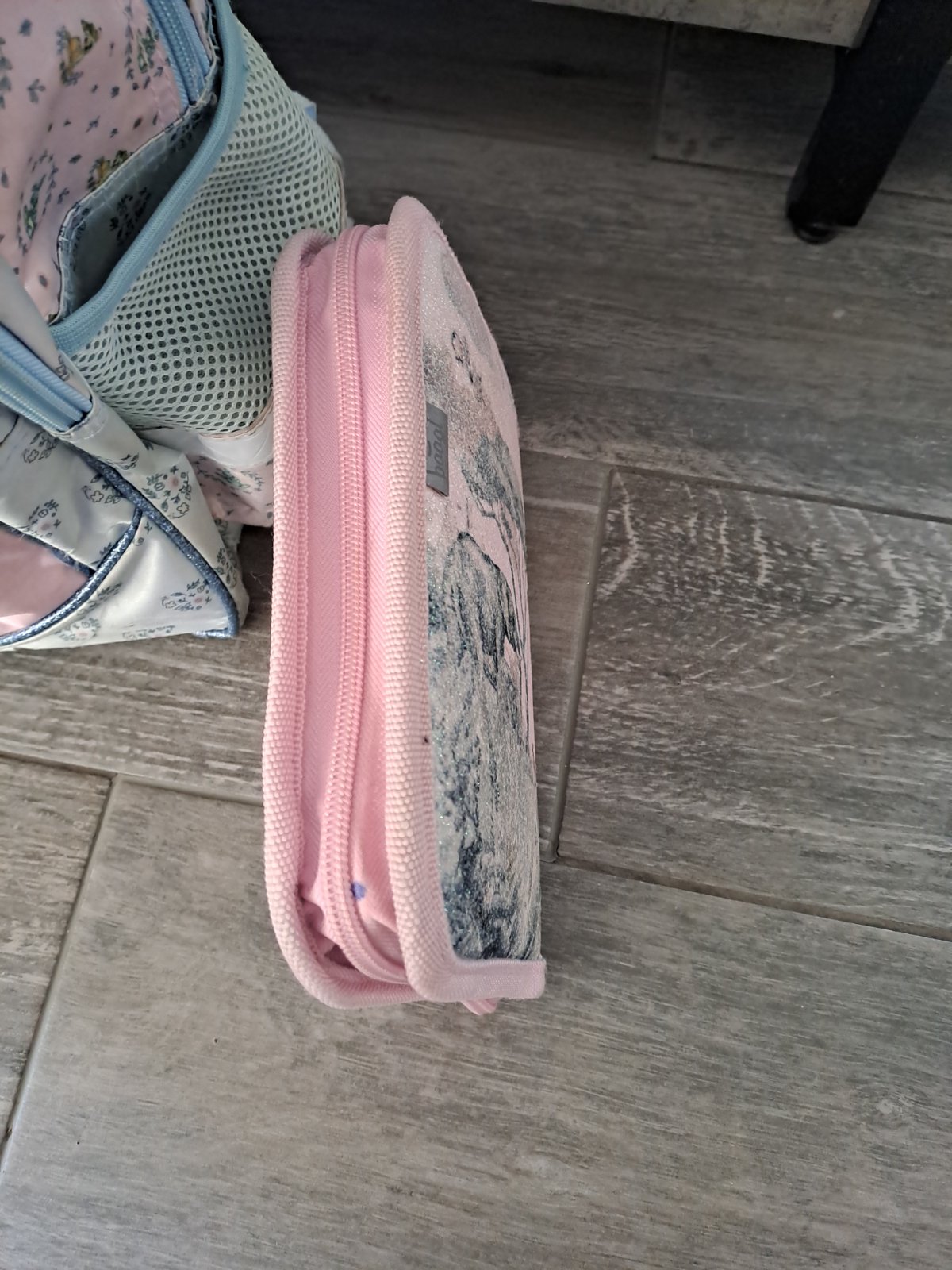 Výborný stav, ako na fotke. Krásny zaujímavý s jemným trblietkami.. 6€- peračník . V ponuke mám aj tašku, vid fotky..