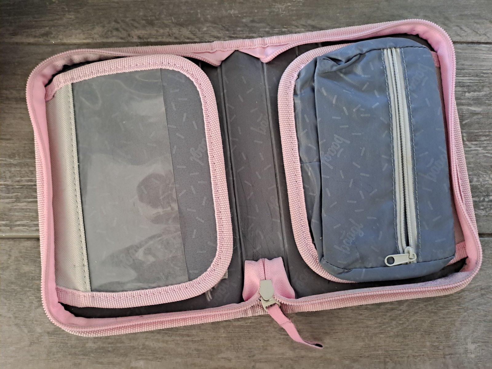 Peracnik je vo velmi dobrom stave plneny gelovymk perami. Ma tri priecinky na zips.
