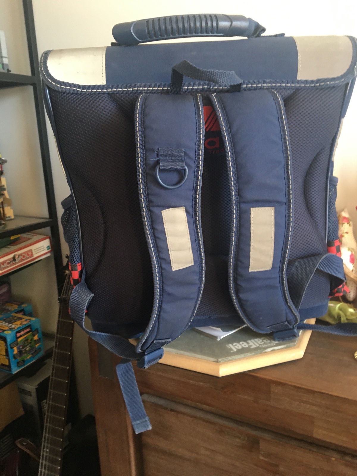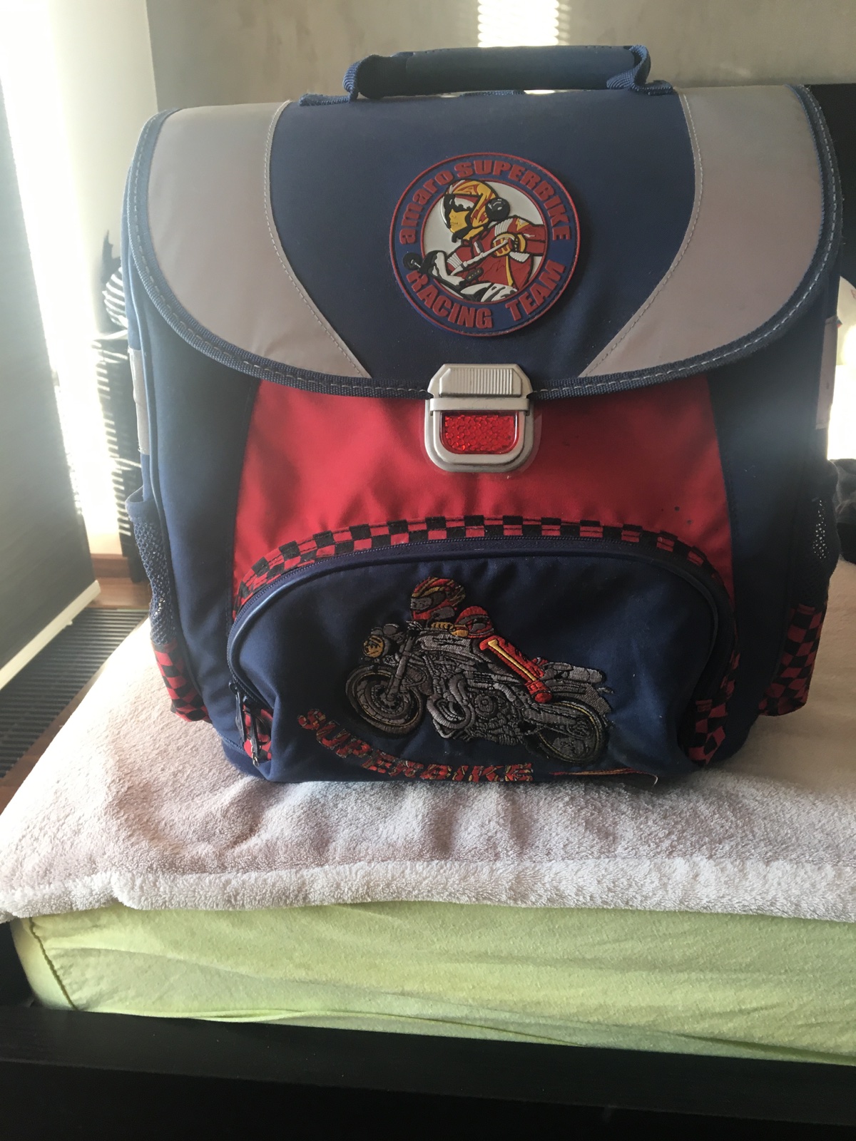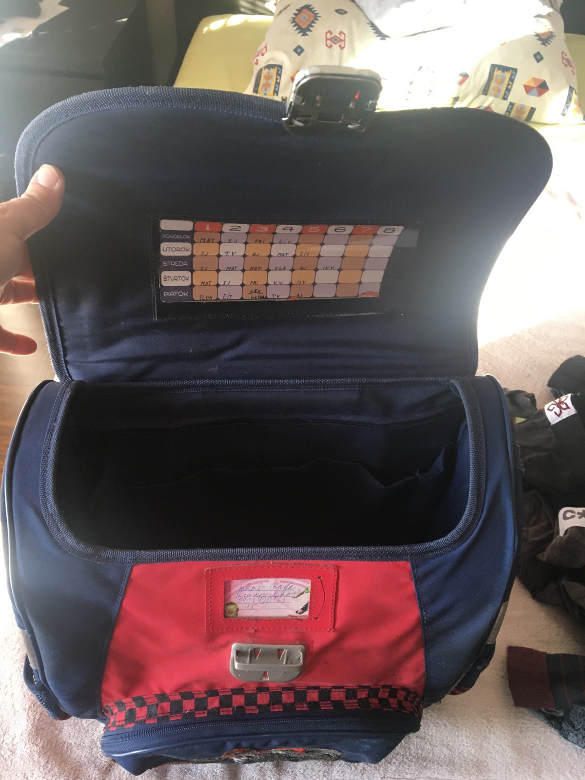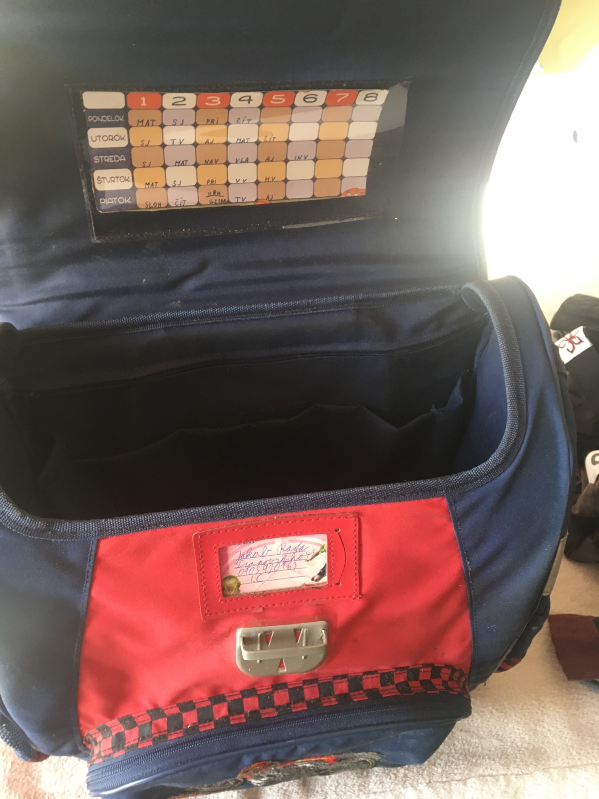 Školská taška pre chlapca, veľmi ľahká úžasná. Kvalitne prevedenie, drží tvar a nepadá ako ruksaky čo sa nedajú postaviť na zem. Je odľahčená a priestranná. Vidno použitie, je zospodu trochu zafúľaná ale bez poškodenia. Dávam symbolicky