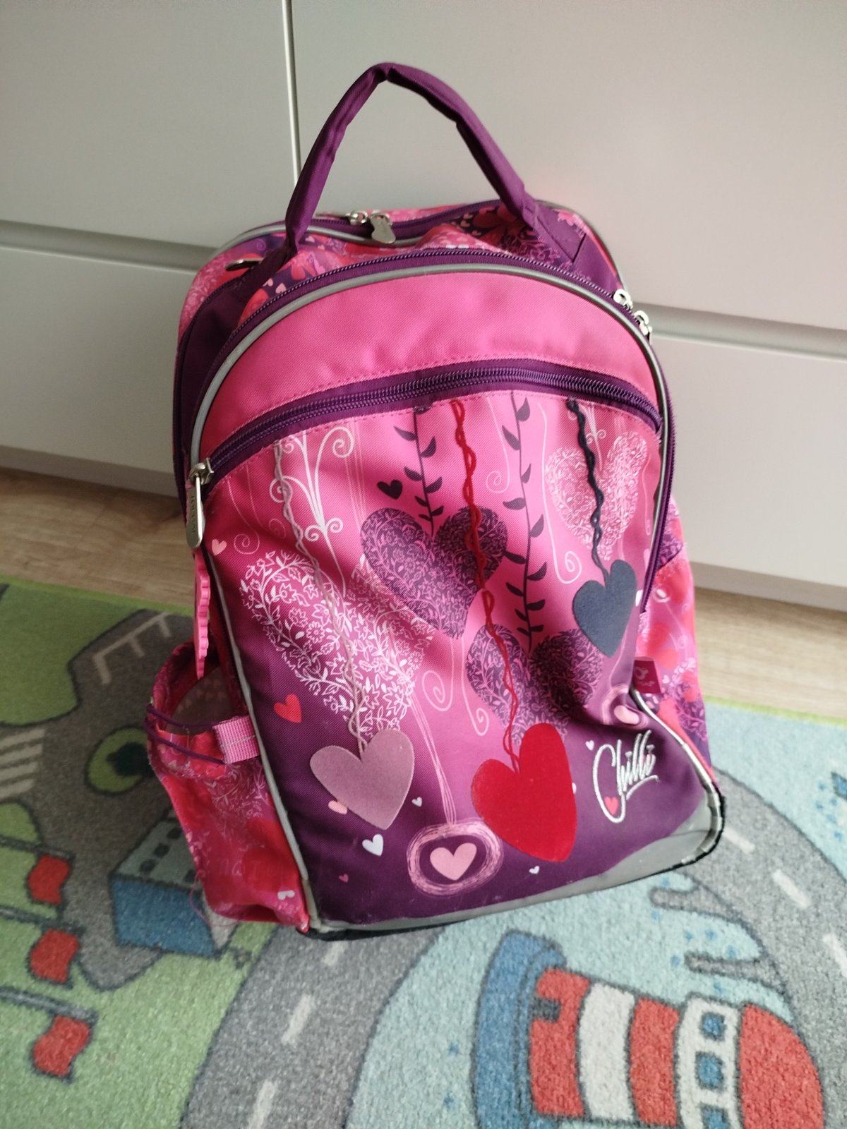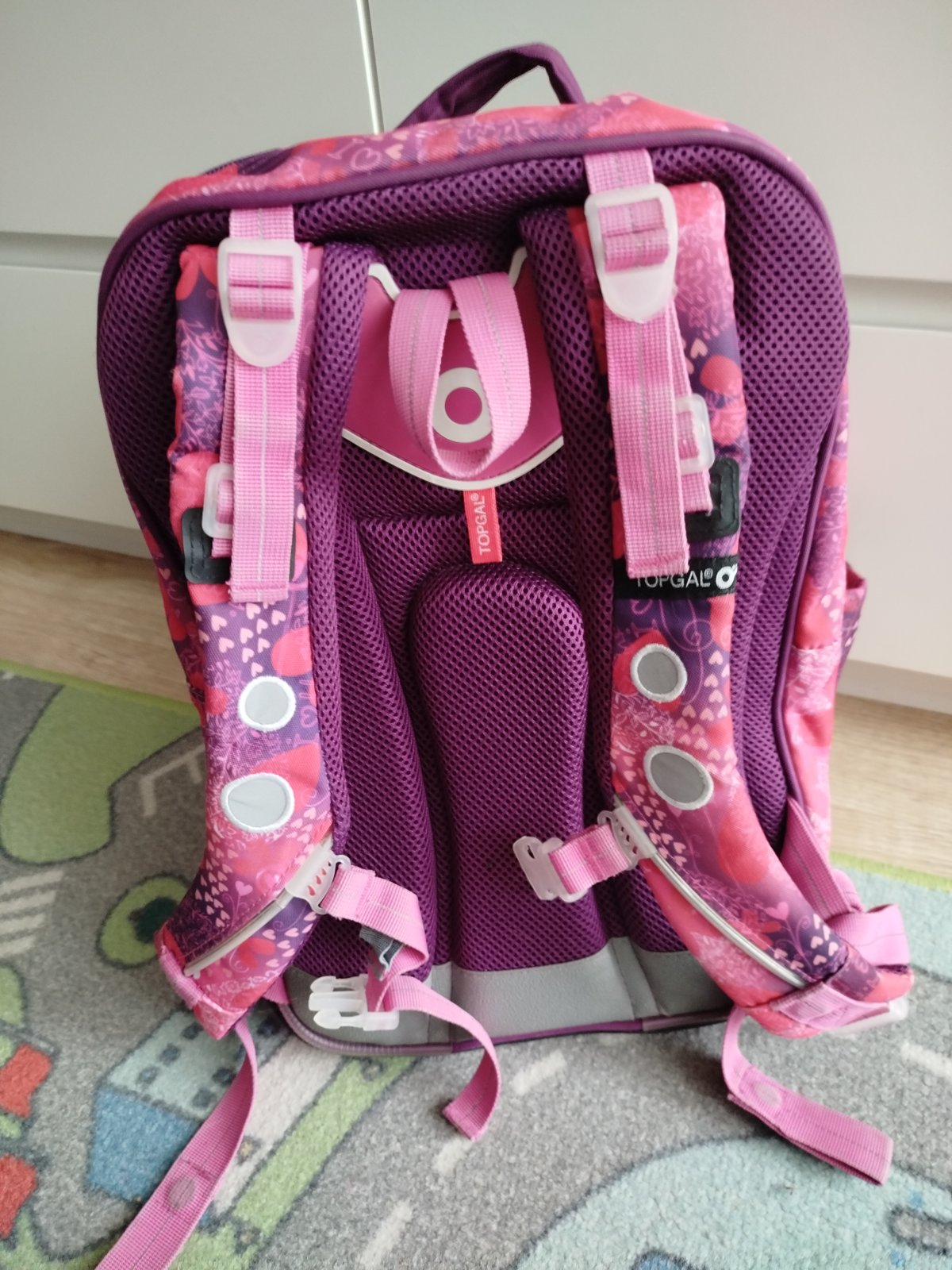 Super skolska taska kvalitne znacky Topgal so zamatovymi srdieckami