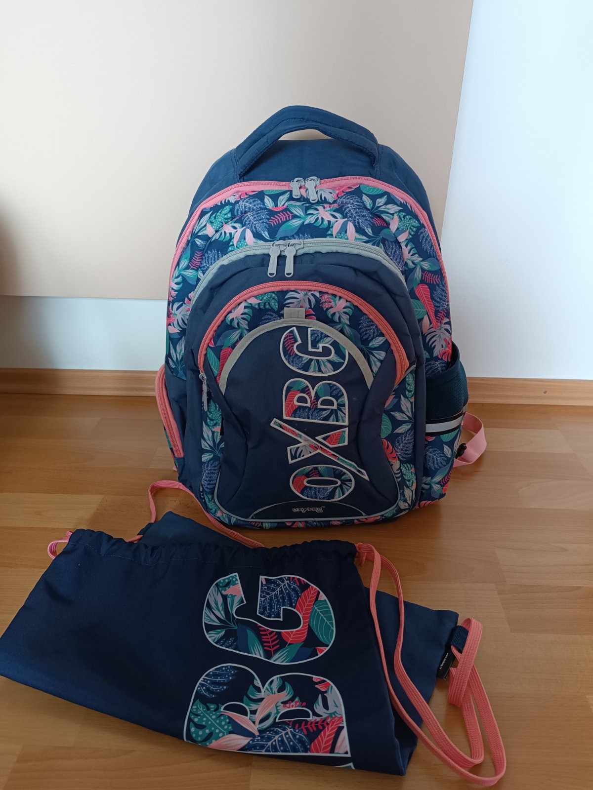Oxybag, plne funkčná školská taška zo známkami používania funkčné zipsy je oprata+ je k tomu vrecko na prezúvky alebo telesnú výchovu.