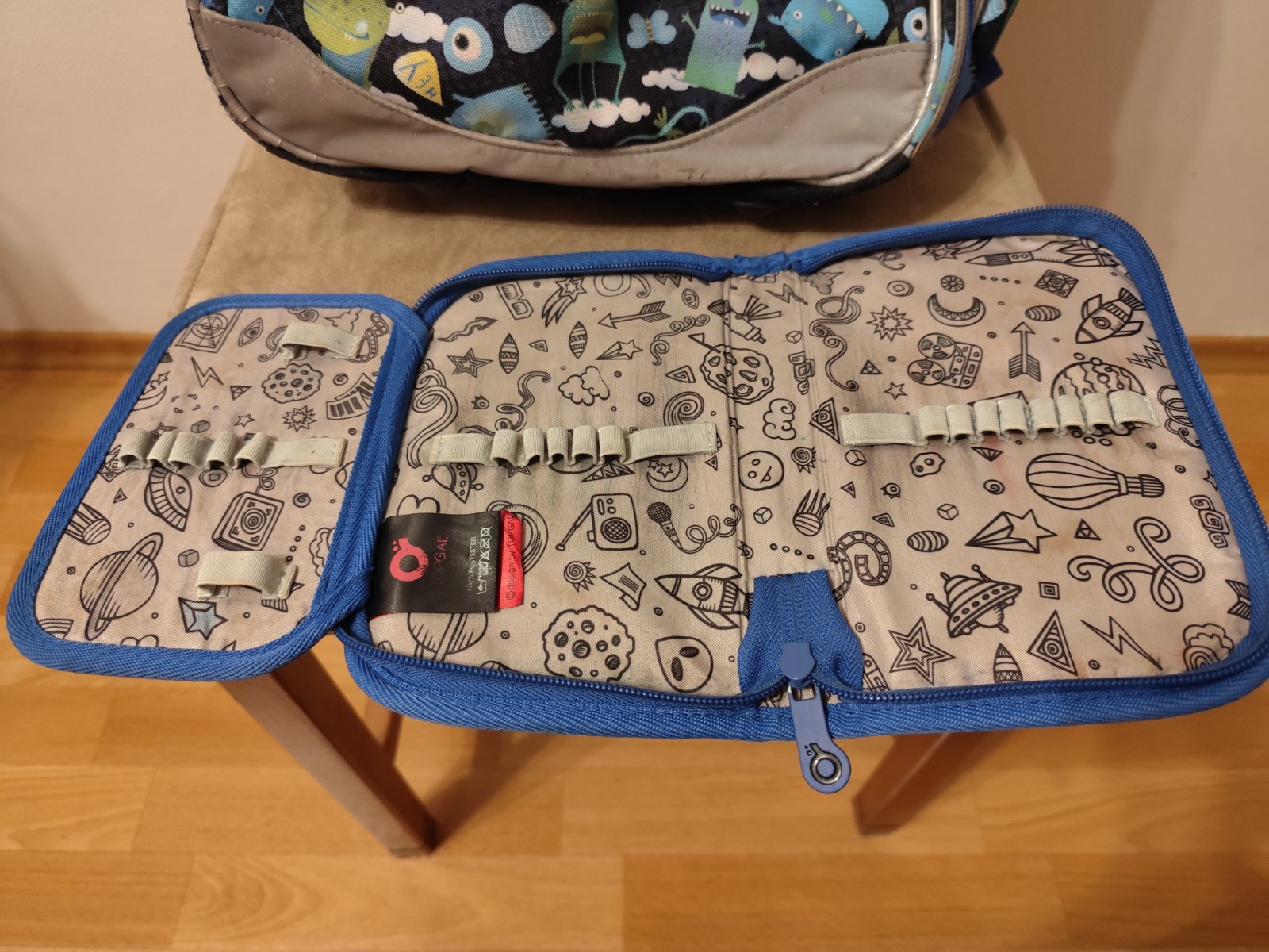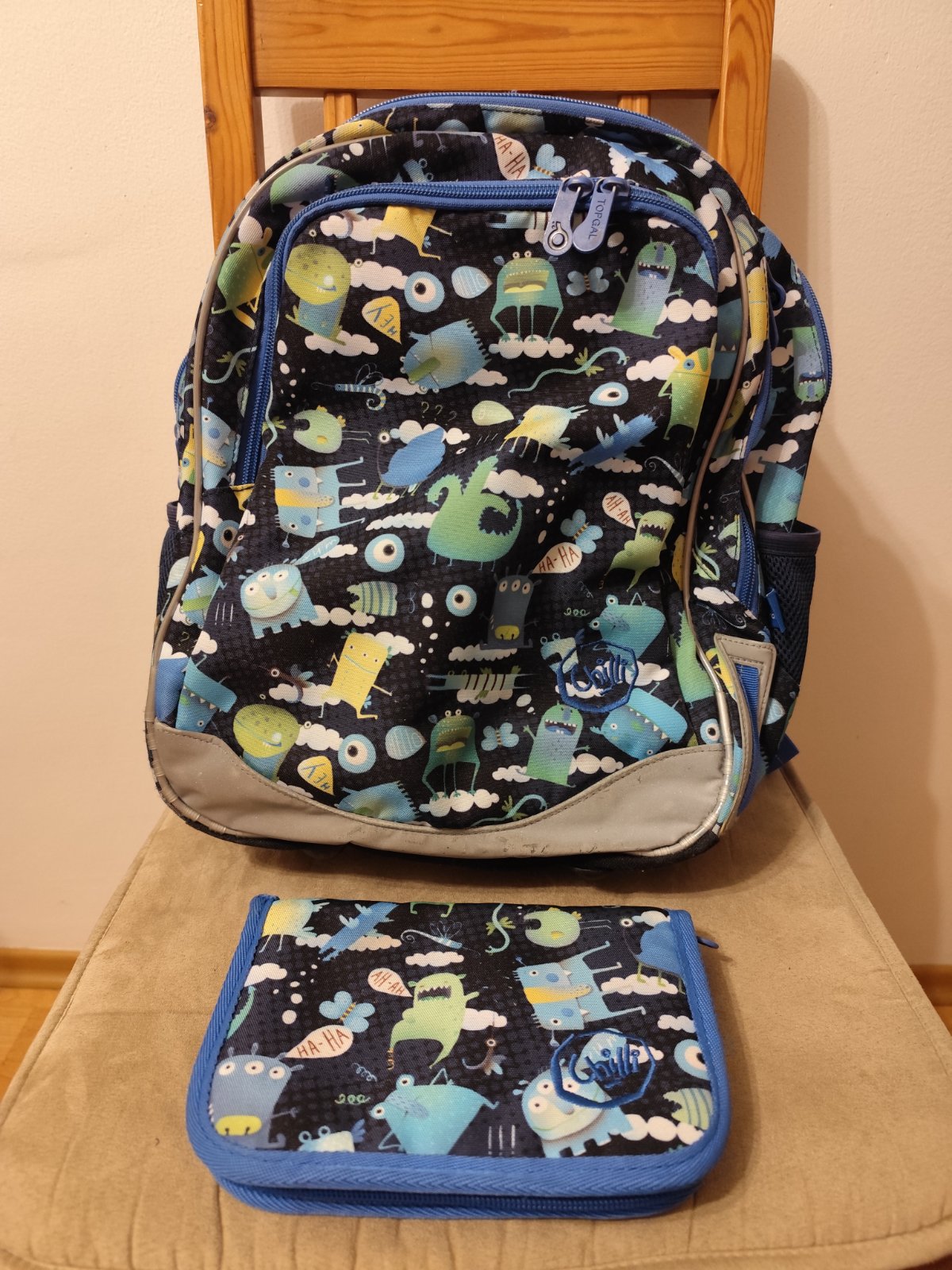 Školská taška spolu s peracnikom, značka Topgal, všetko oprate.znamky opotrebenia ale inak všetko funkčné.