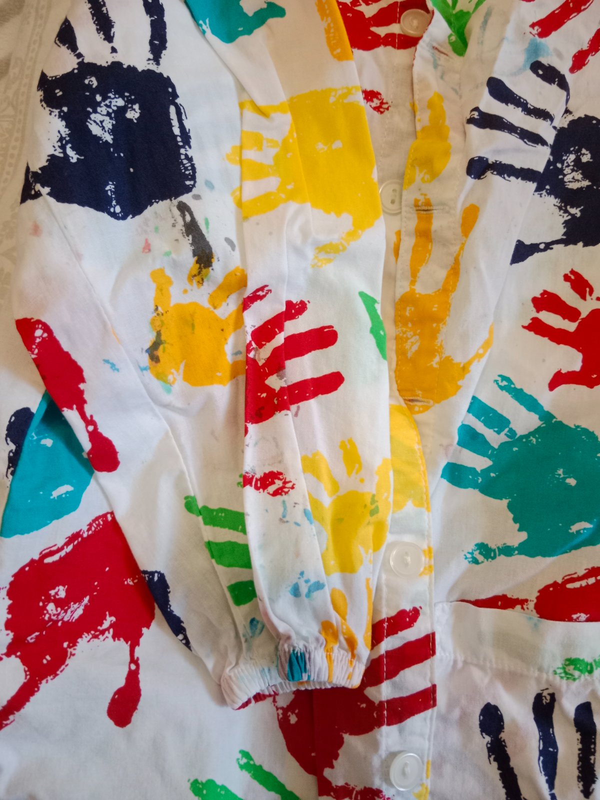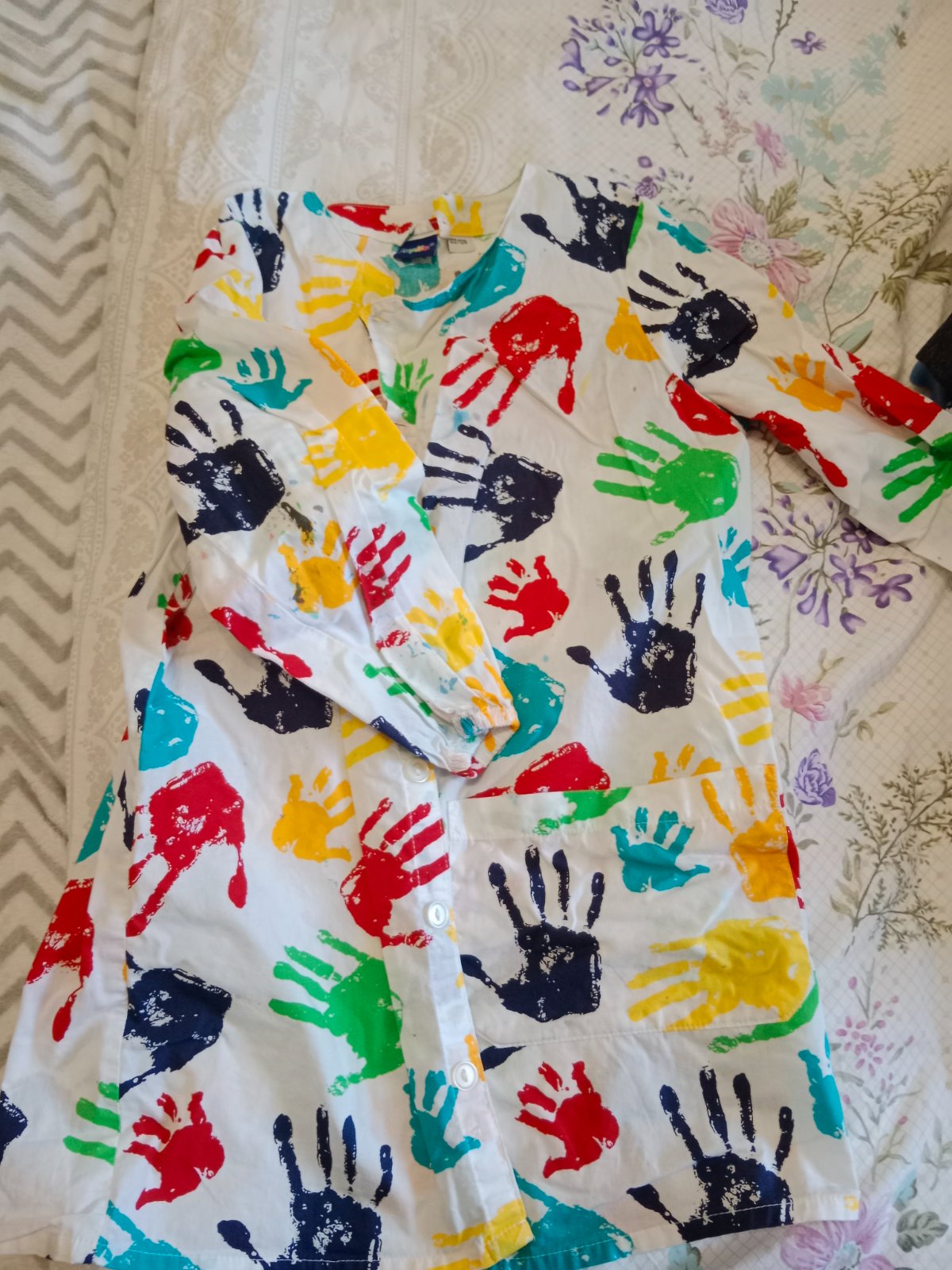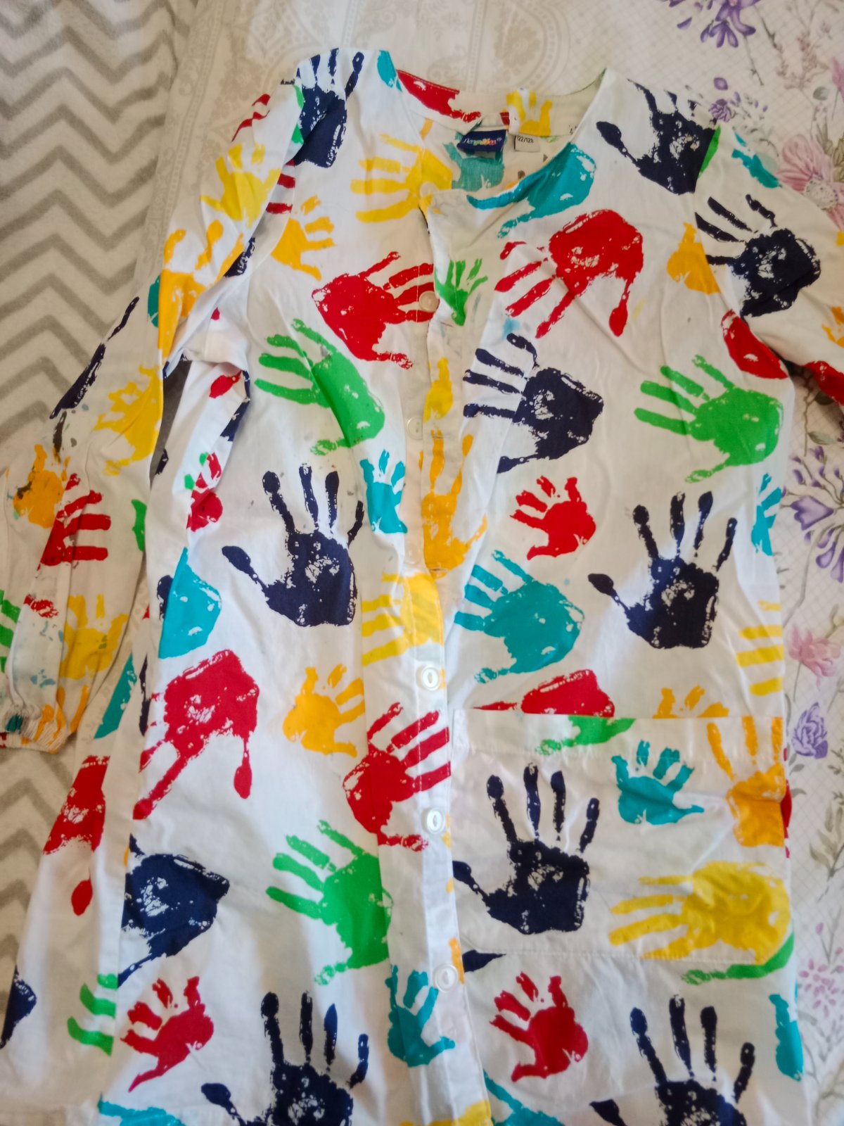Predám plášť na výtvarnú výchovu s dlhým rukávom, je na gombíky, je používaný, je od farieb, dá sa vyprať, je bavlnený farby mi nezišli...ale je to na výtvarnú výchovu