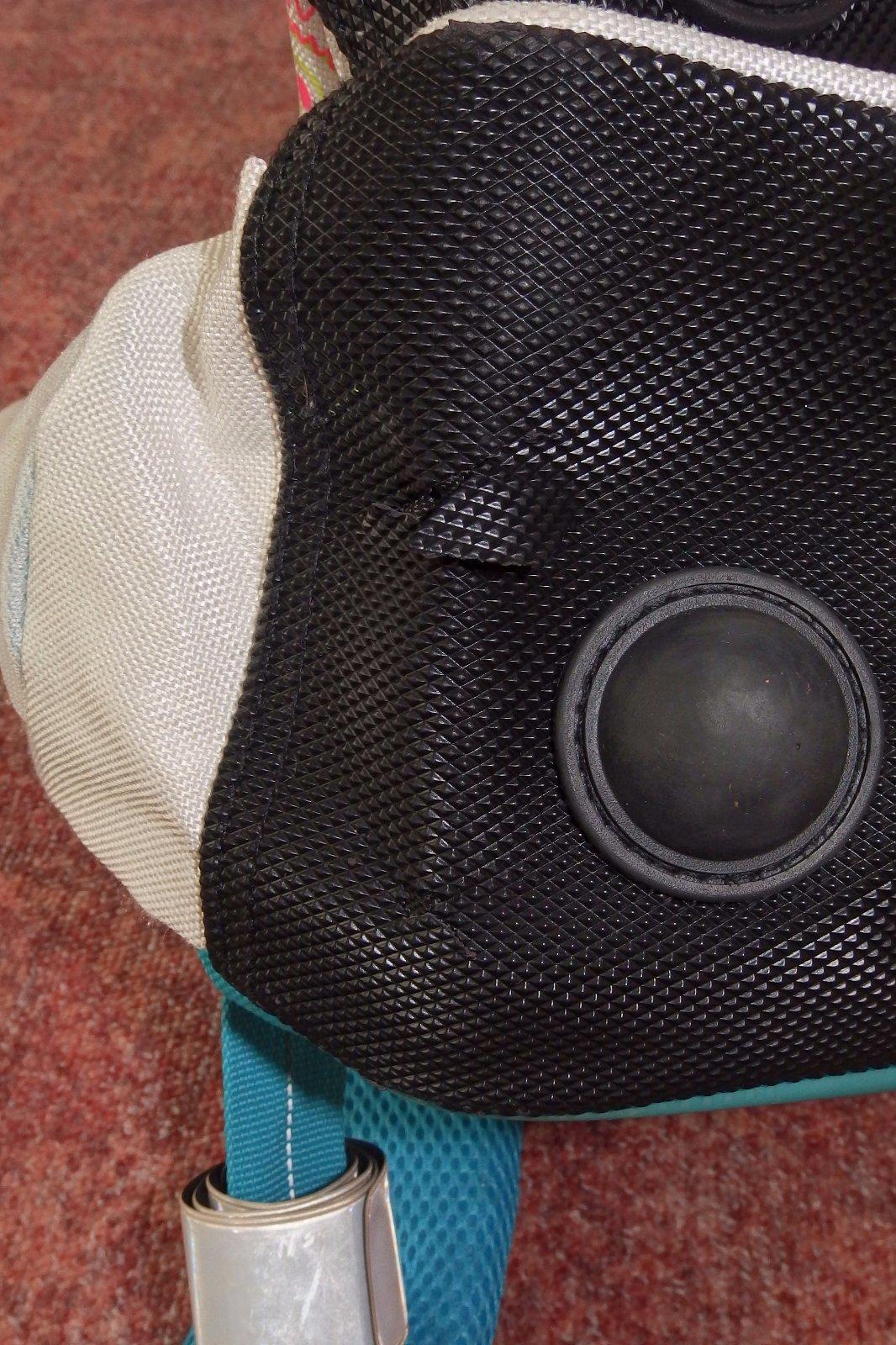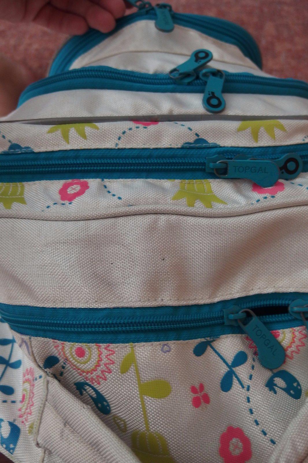 kvalitna taska, vycistena, jedina chybicka,dole to cierne trochu prerezane, žiadna vada pri noseni, anatomicky tvarovany chrbat,lahka žiarive farby