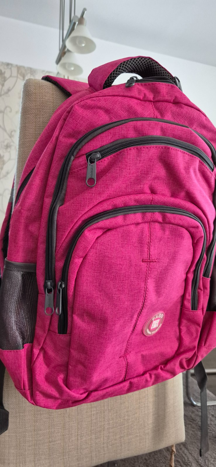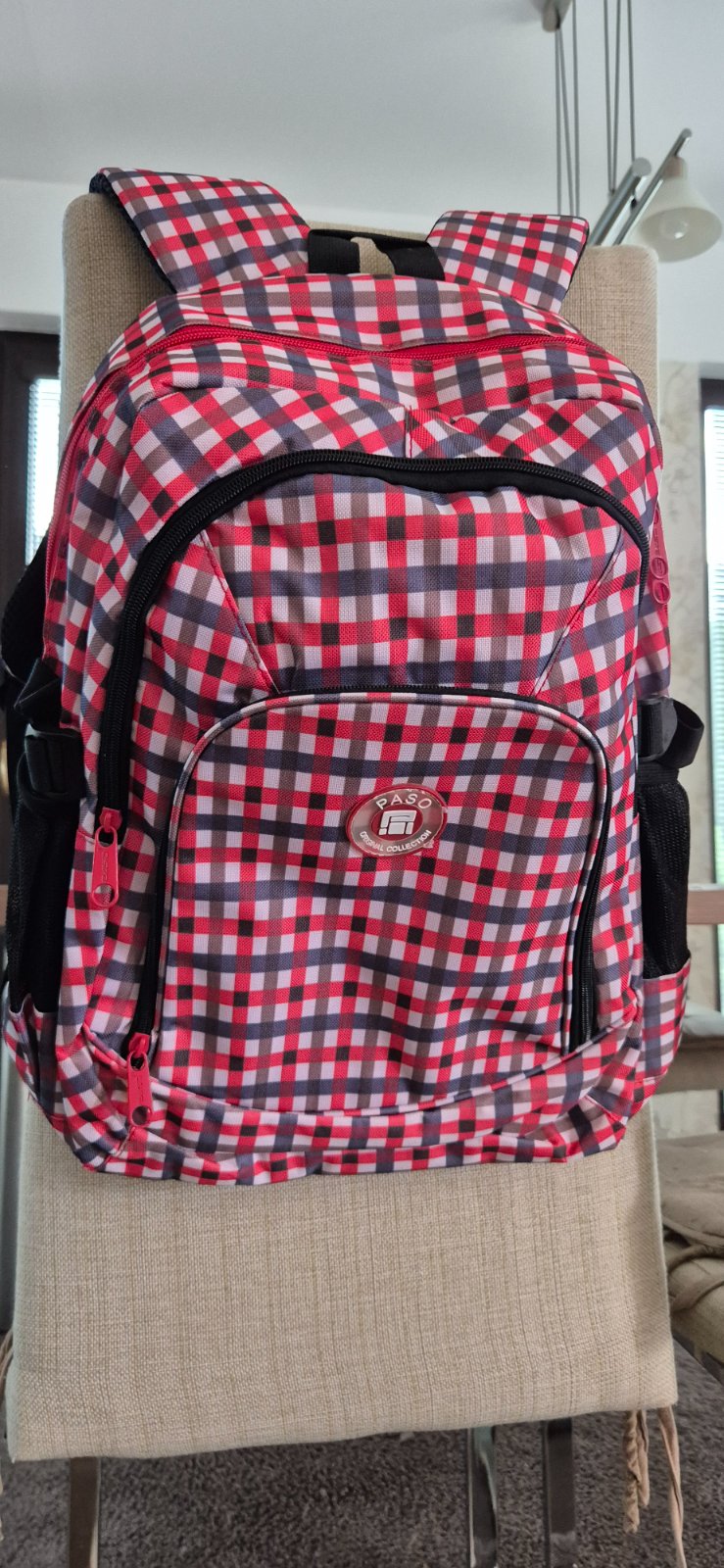 Ruksak, vhodný aj ako školská taška. Má tri úložné priehradky, dve bočné vrecká a nastaviteľné mäkké popruhy. Materiál: 100% polyester Rozmer: 42 x 32 x 20 cm Mám skladom Poštovné 4€