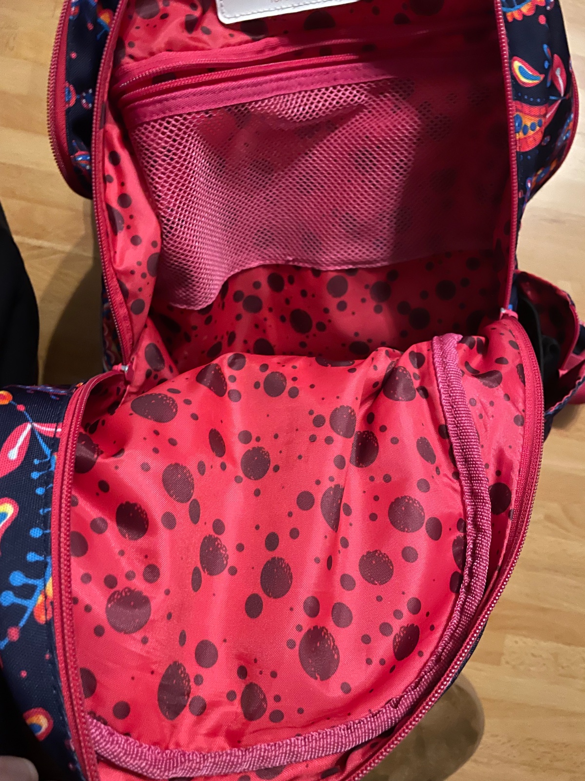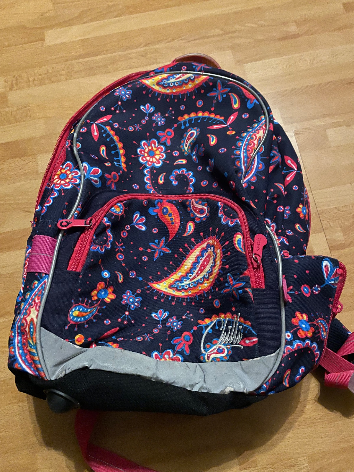 Veľmi praktická školská taška má už nejaké poškodenia, ale to by malo ísť vyčistiť a je stále funkčná. Jeden zips je nefunkčný, ale je tam ja druhý takže to nerobí problém. Pripájam aj link tam sú ...