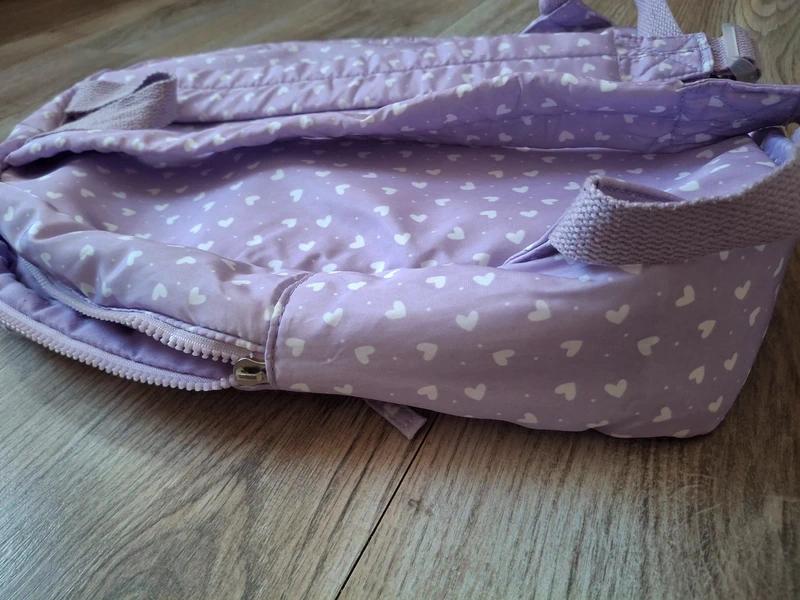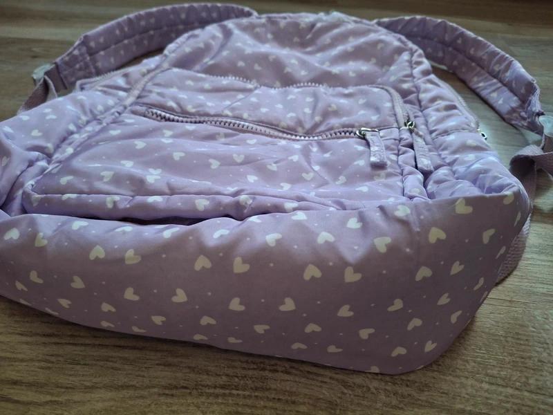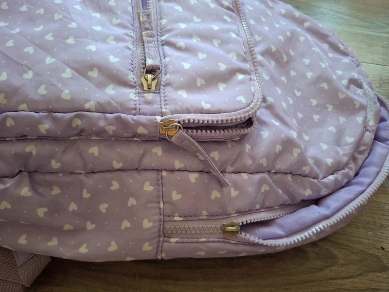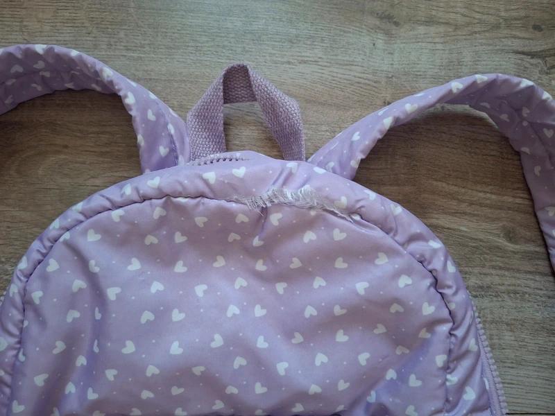 Používané, jeden školský rok, v dobrom stave, chyby sú odfotené na detailných fotkách, fialový batoh so srdiečkami 32x43cm, horné ucho bolo prišívané, treba ešte zašiť aj kúsok na vonkajšej časti, viď foto, zvnútra je v poriadku, určite ešte poslúží...