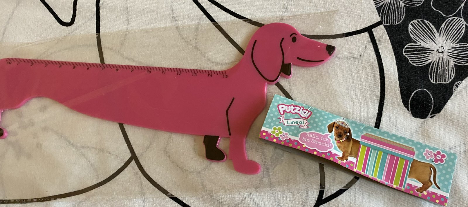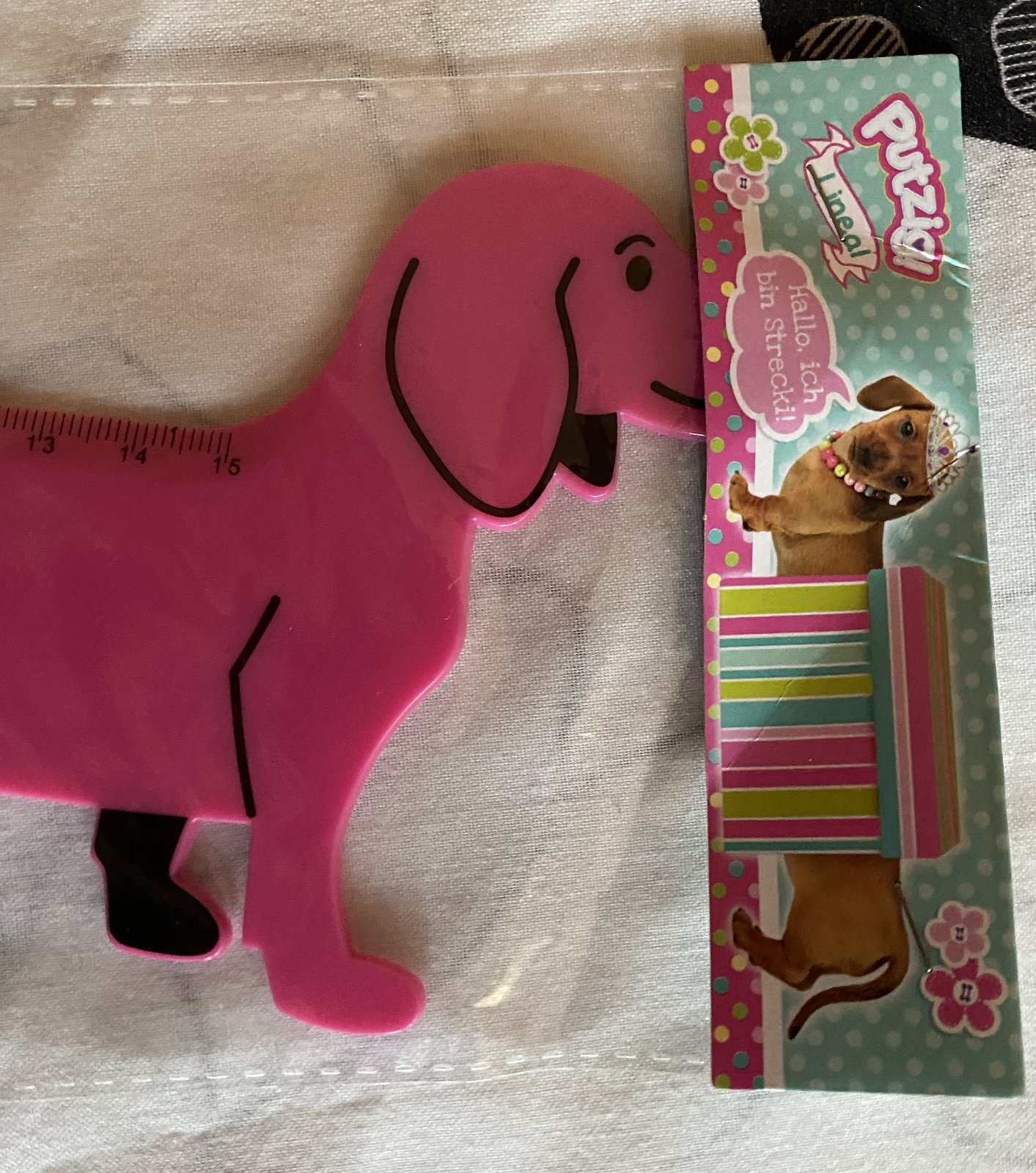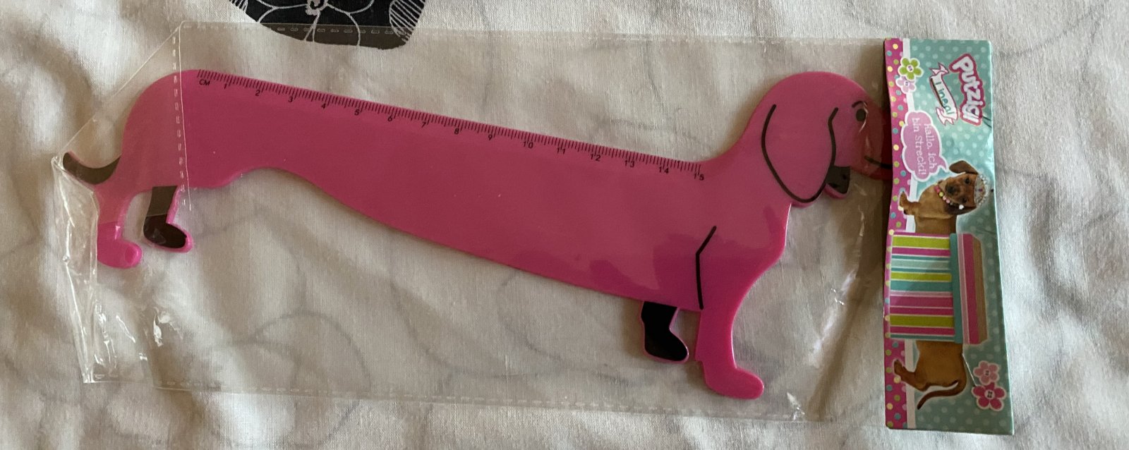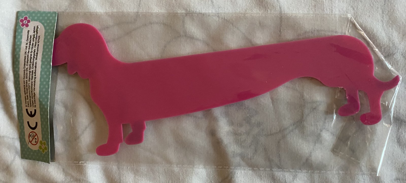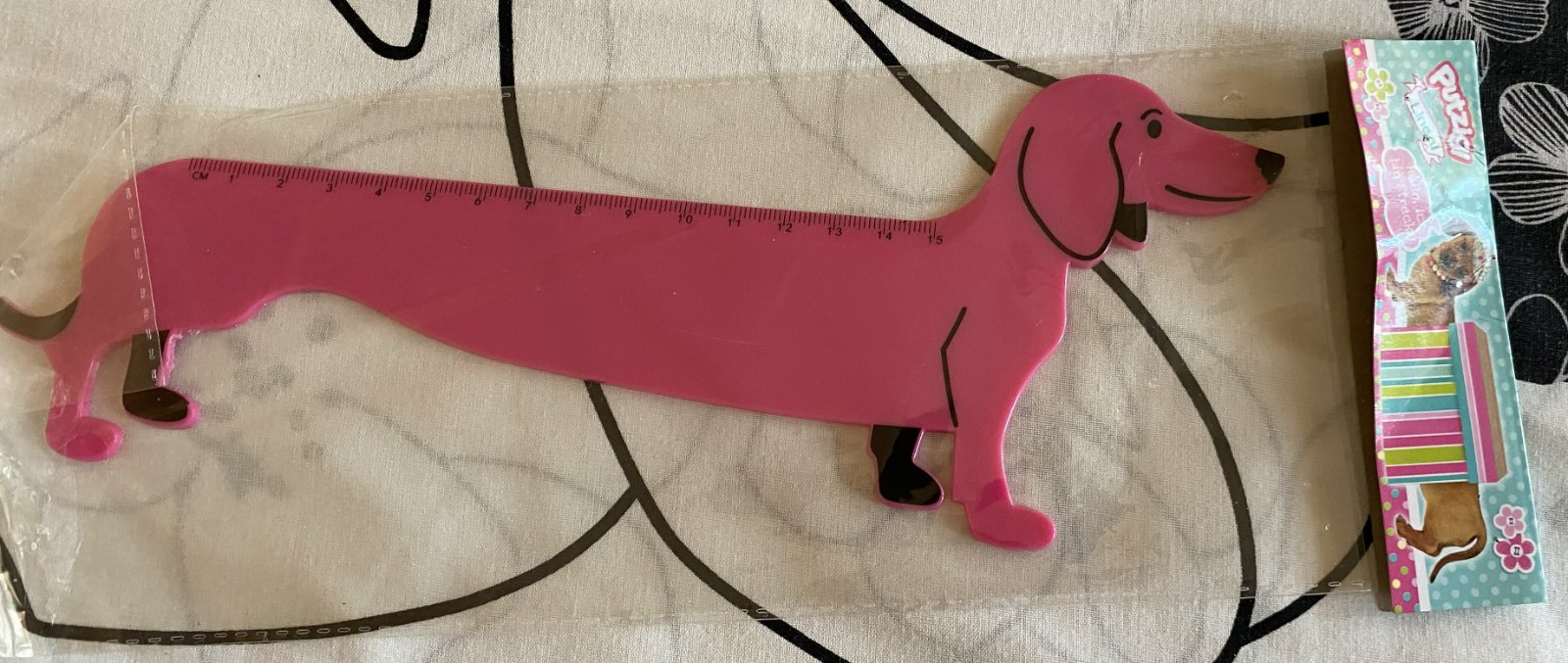 Plastové pravítko - psík, pevný plast, v top stave. Miery: dĺžka s hlavou a chvostíkom: 25cm, dĺžka trup: 19cm, výška predná časť: 9cm.
