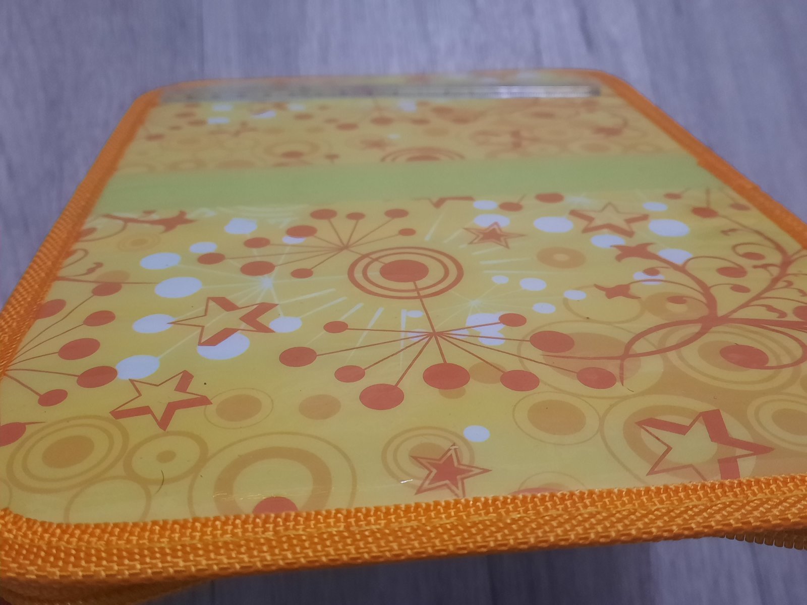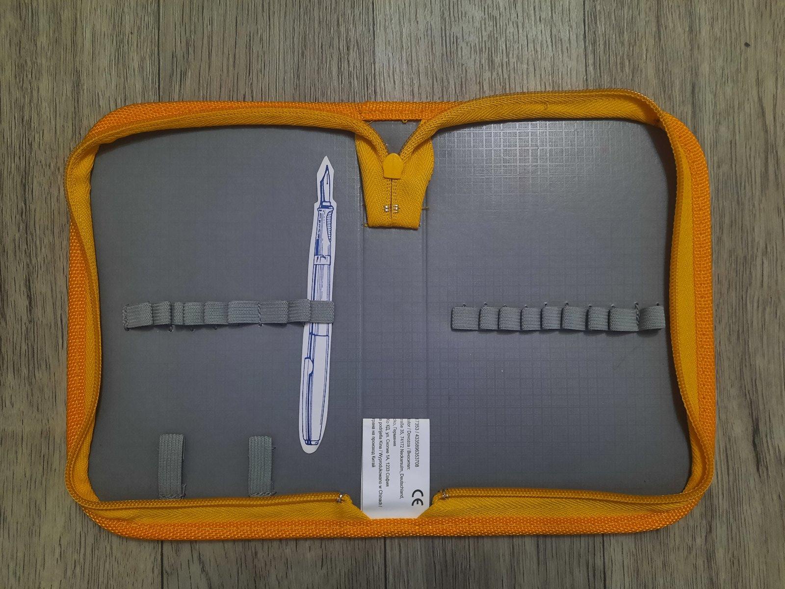 2. Žltý peračník je nový, nepoužívaný (nie je ani poohýbaný, stále rovný) , bledý fľak je tam odnovoty, nevideli sme to pod obalom. 10€