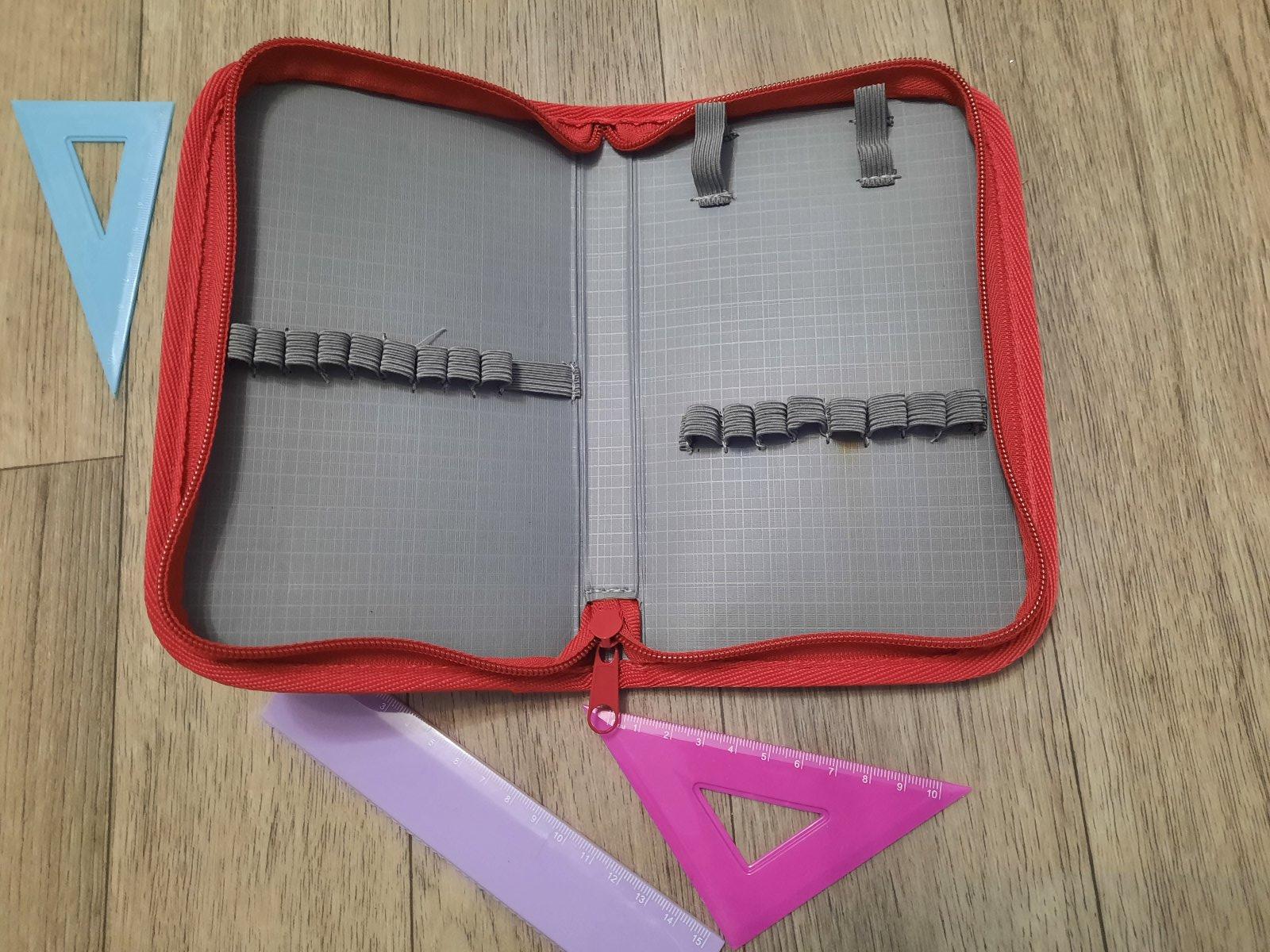 1. Klasický červený peračník pravítkami. 10€