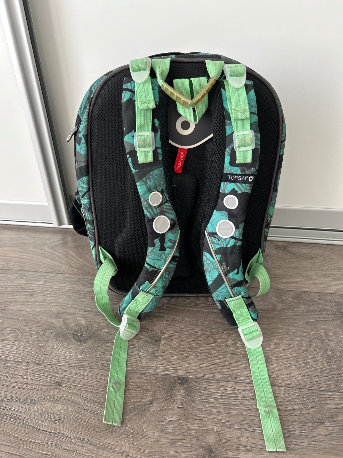 Kvalitná školská taška značky Topgal, vnútri ako nová, zvonku menšie znamky použivania.