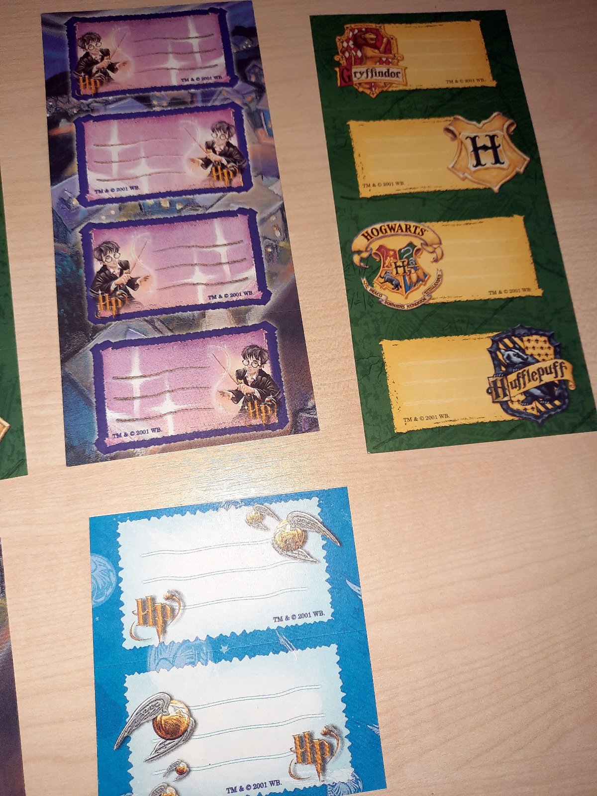 ✔ menovky (nálepky – štítky) na zošity s motívom Harry Potter (20 ks) – 2 €