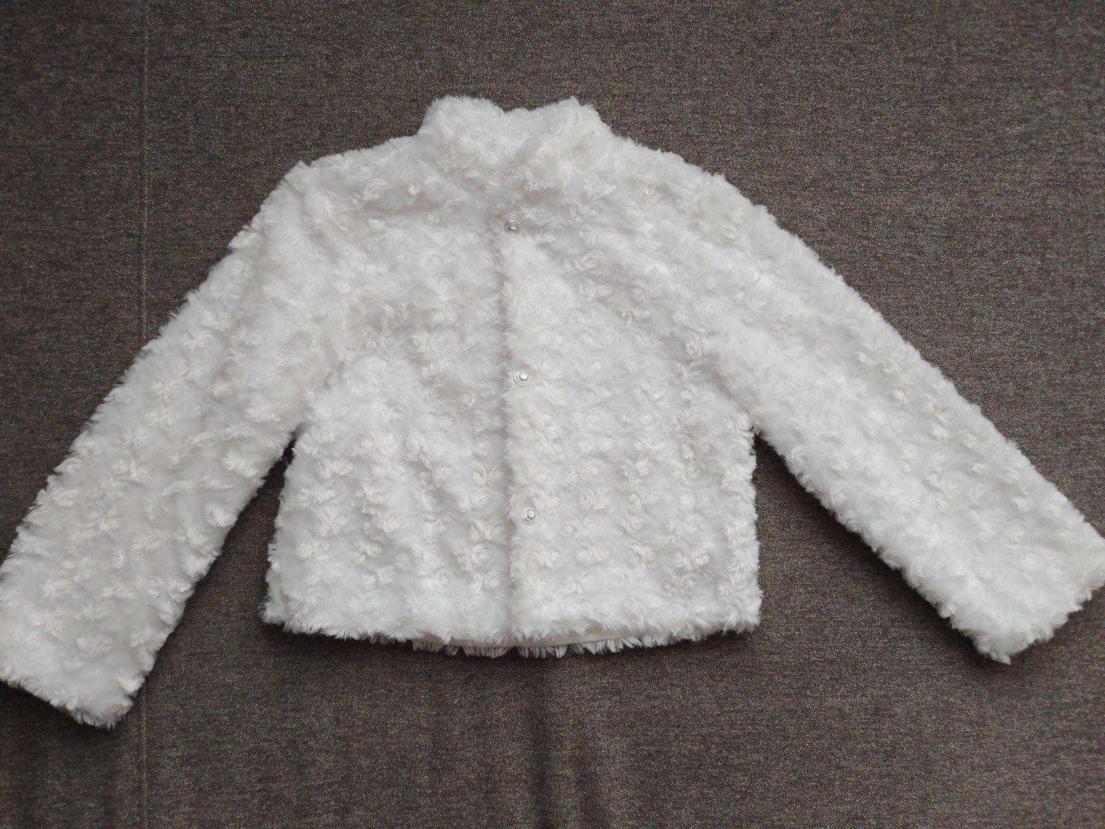 Predám bolerko veľ.134,raz oblečené,bez poškodenia, krásne biele, zapínanie na gombíky, rozmery: dĺžka od pleca-39cm, dĺžka rukáva od krku -53cm, obvod v podpazuší -76cm, spodný odvod bolerka-76cm.Cena:9€+poštovné.