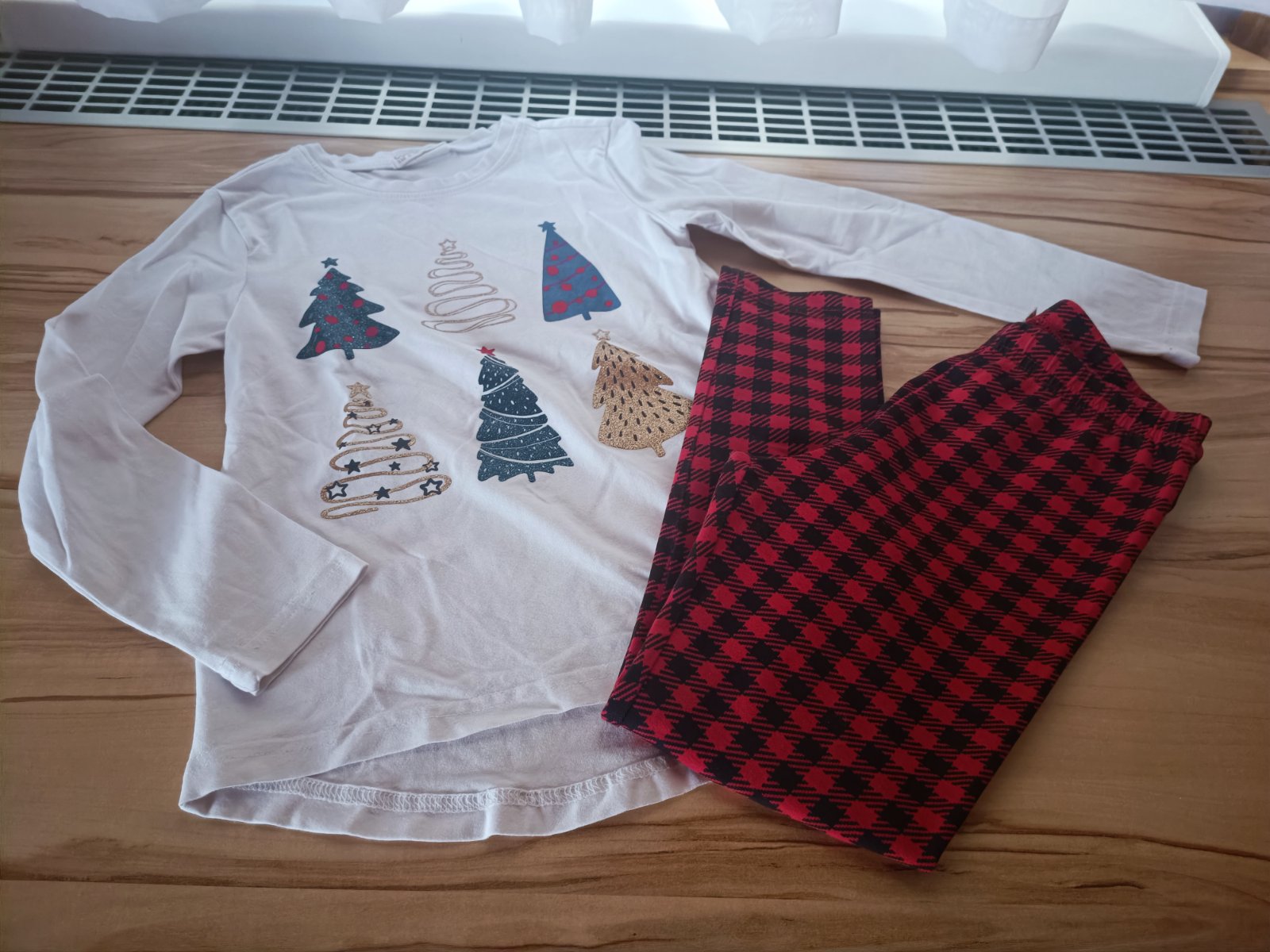 Dievčenské vianočné oblečenie: tričko a legíny, zn. Bonprix. v. 116. Osobný odber alebo plus poštovné vopred na účet.