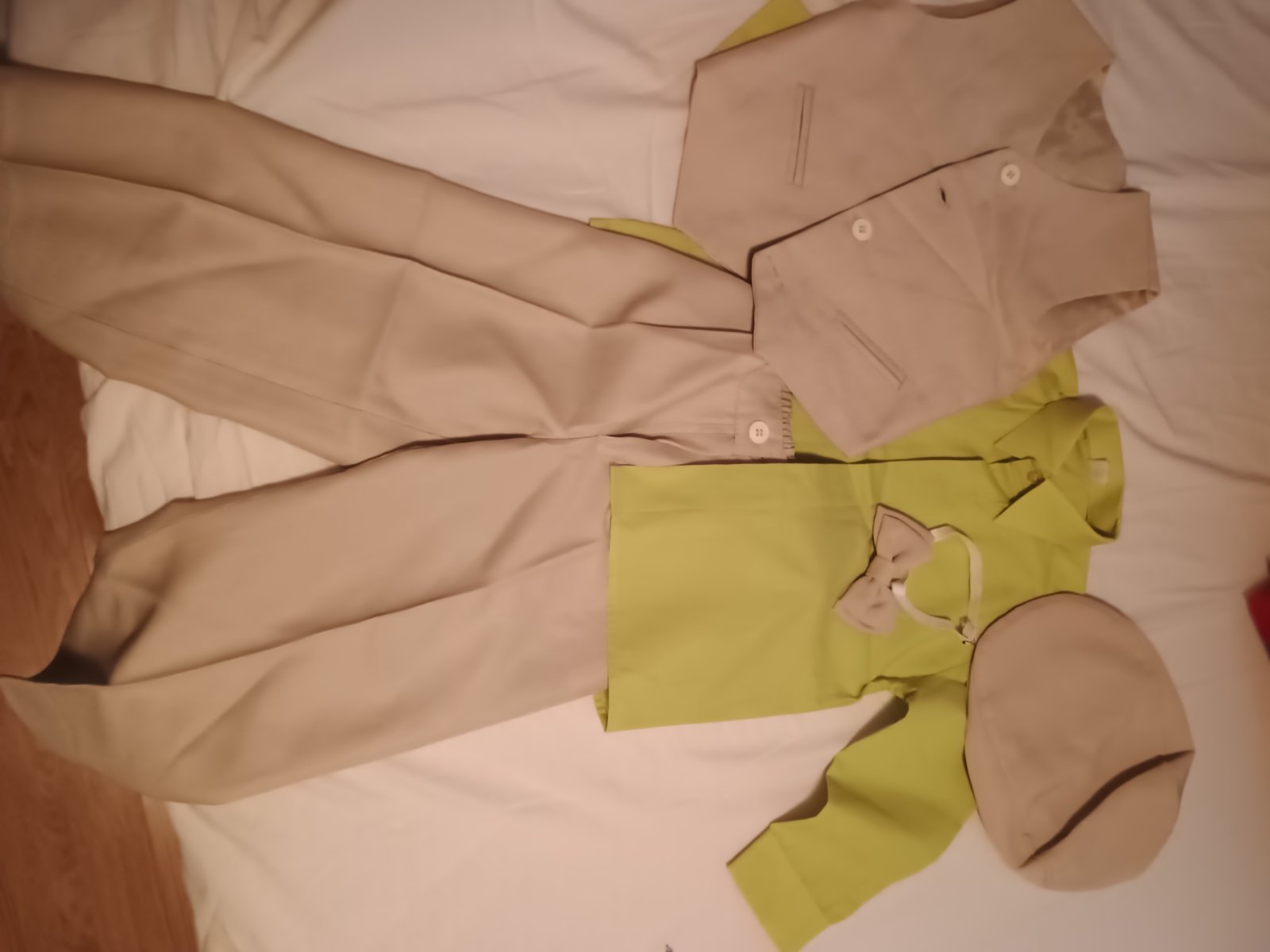 Košeľa,motýlik,baretka,vesticka a nohavice