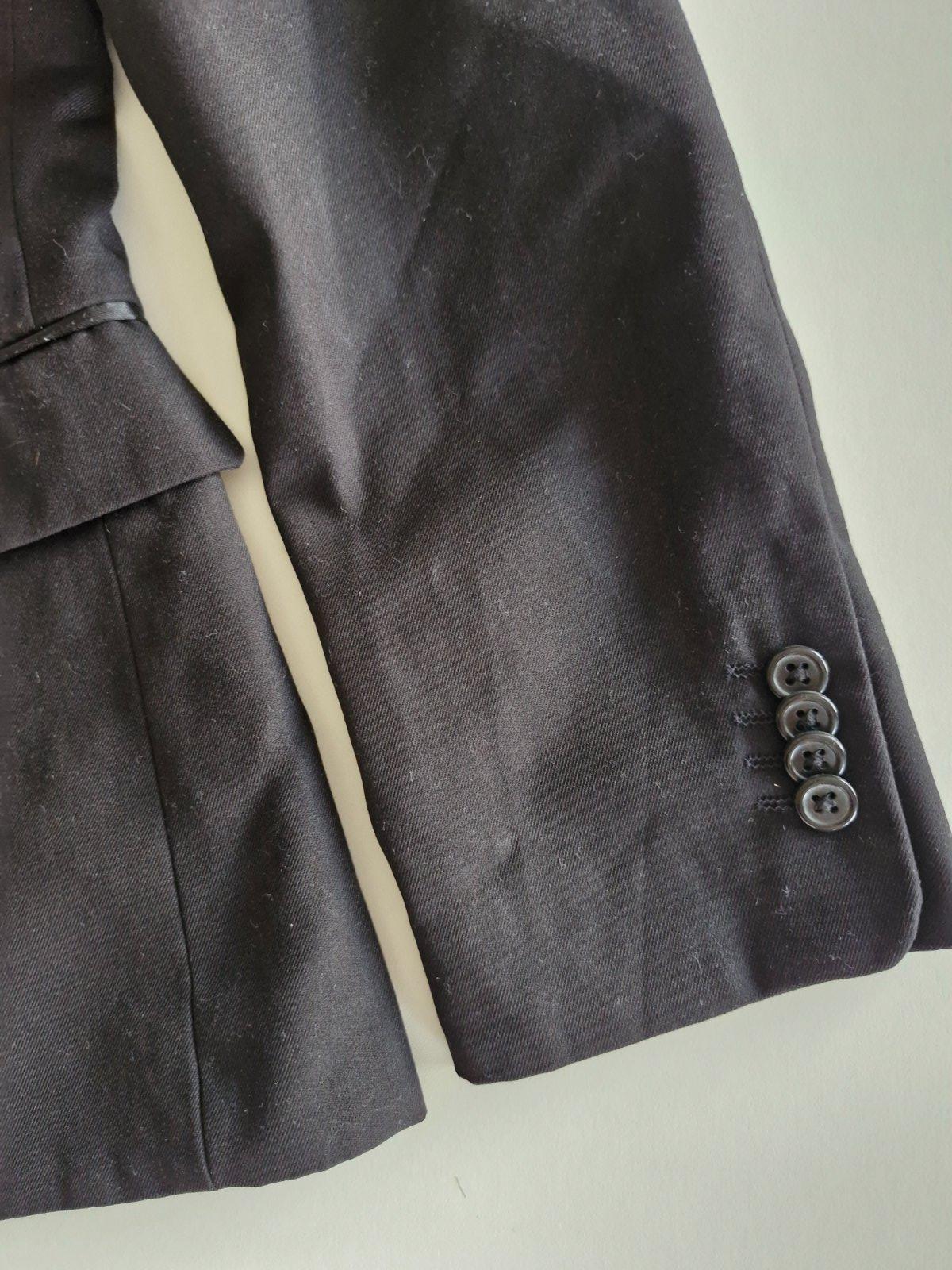 Sako je súčasťou obleku kupovaného v kvalitnom Poľskom butiku. Čierne akoby so štruktúrou jemných pásikov, naozaj veľmi pekné. Oblečené jeden krát - na svadbu. Kupované na mieru - syn bol skôr plno...