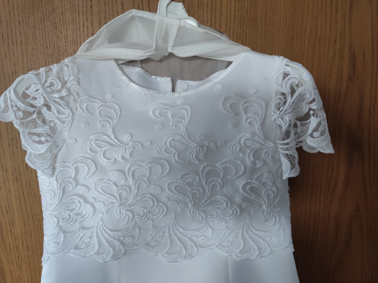 Krásne šaty na prvé sväté prijímanie, sú skrátené zahnutím, dajú sa predĺžiť. Teraz dĺžka šiat od ramien cca 113 CM, dajú sa o 4-5 CM predĺžiť.