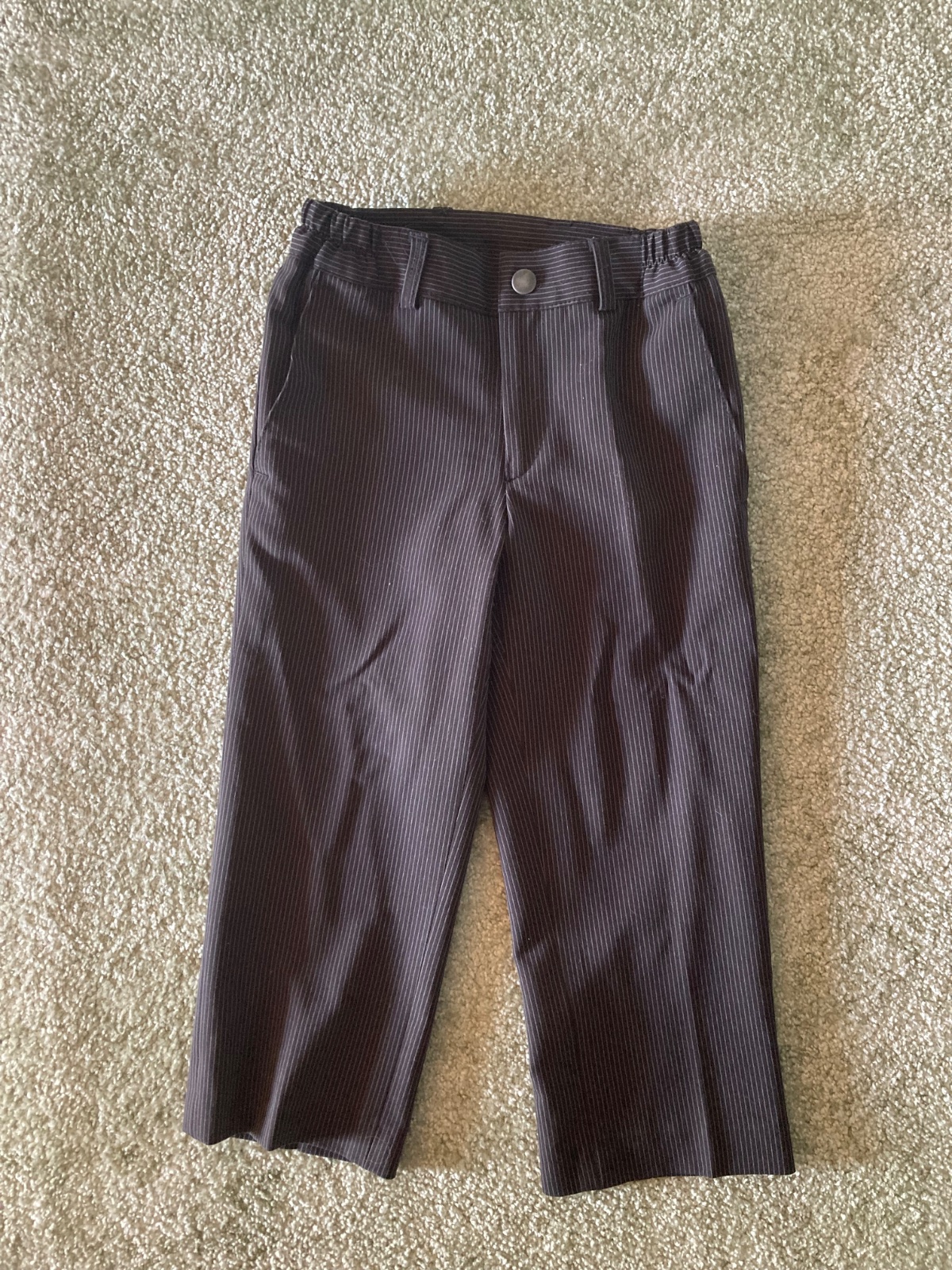 Detský oblek Žakár Elegantný chlapčenský oblek obsahuje: - čierne nohavice - biela košeľa - sivá žakárová vesta - francúzska kravata 100% PES Nohavice majú v páse gumičku v zadnej časti ...