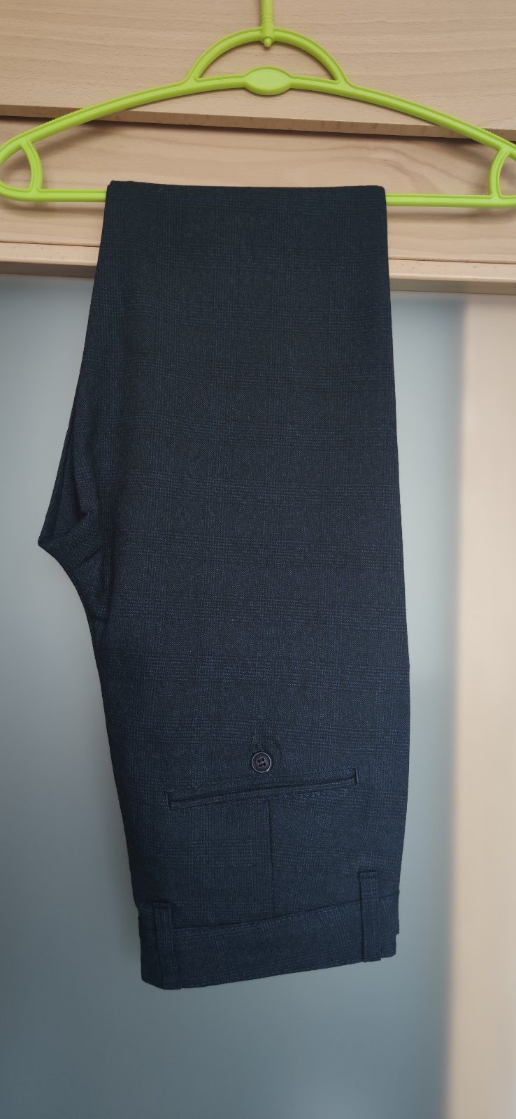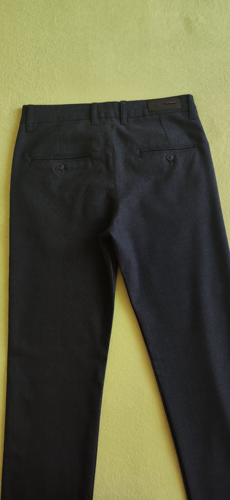 Predám elegantné nohavice a košeľu, raz oblečené, bez známok nosenia, ako nové. Košeľa má slim strih, veľkosť S. Nohavice sú užšieho strihu, veľkosť na štítku nohavíc na fotografii. Farba tmavomodrá s jemným čiernym károm. Oblečenie kvalitné, zakúpené v kamennom obchode. Cena spolu 26 €. Pranie v práčke.