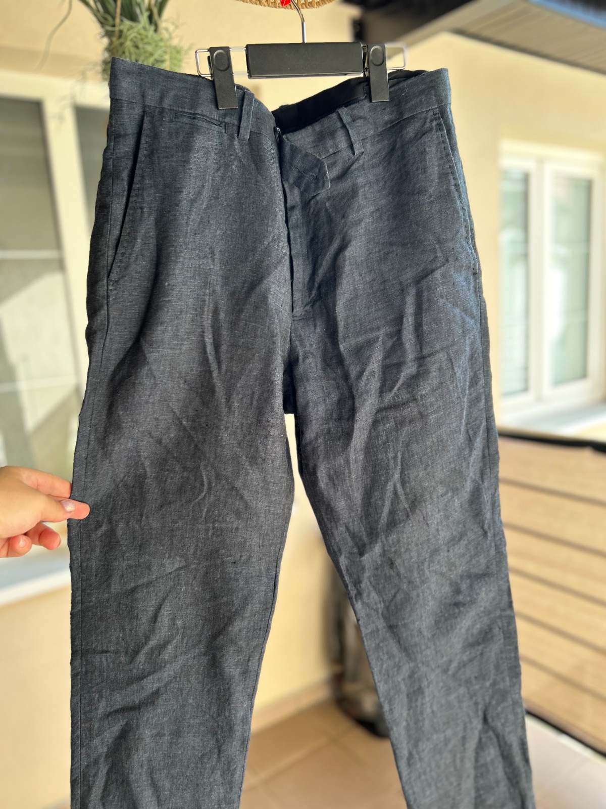 Farba taka sedo-hnedo leskla,pouzity na stuzkovej cislovanie odhadom,syn nosil vtedy L-ka moznost vyskusat z okolia,velmi pekny slim vhodny pre chudsieho a vyssieho chlapca