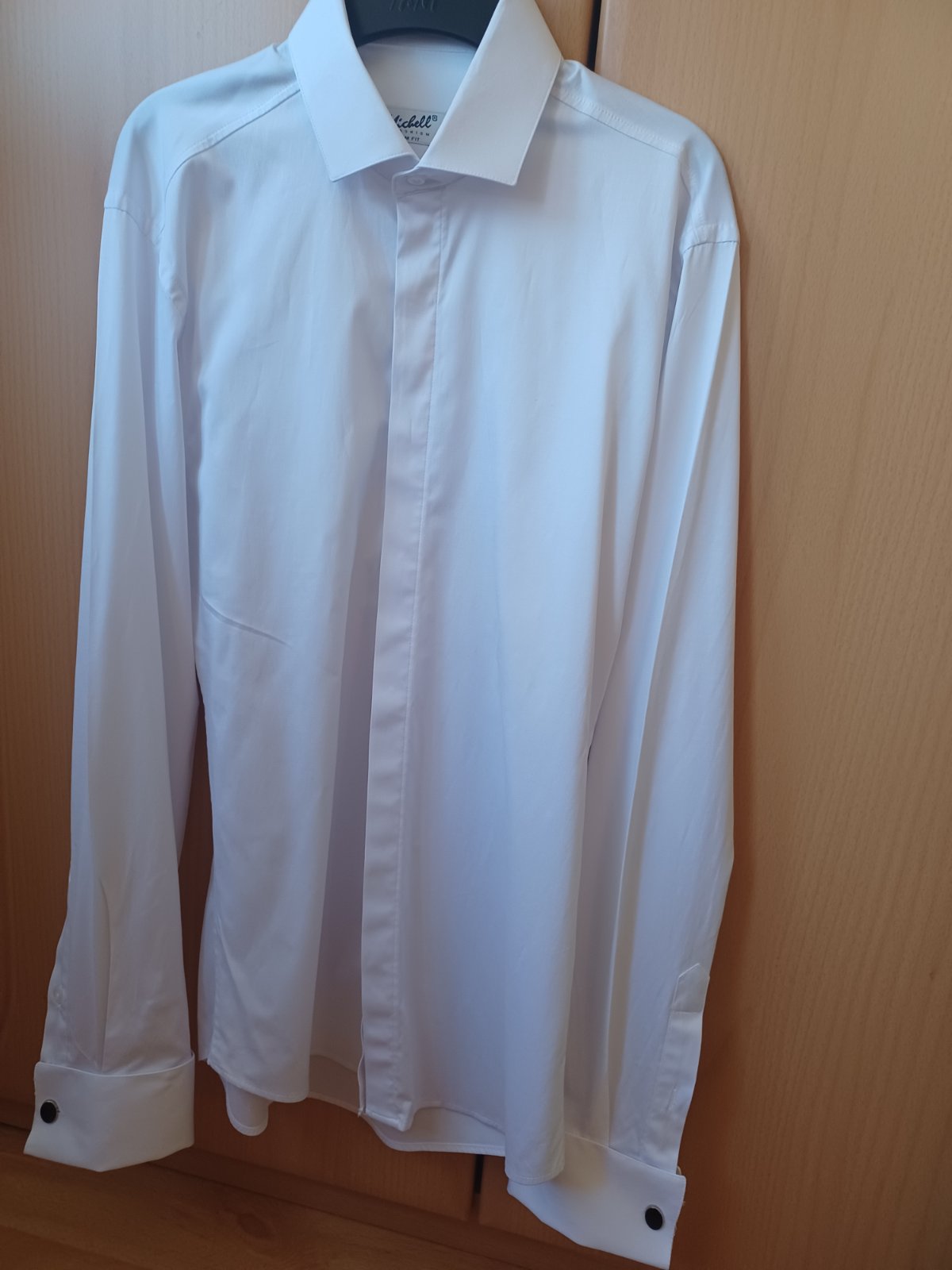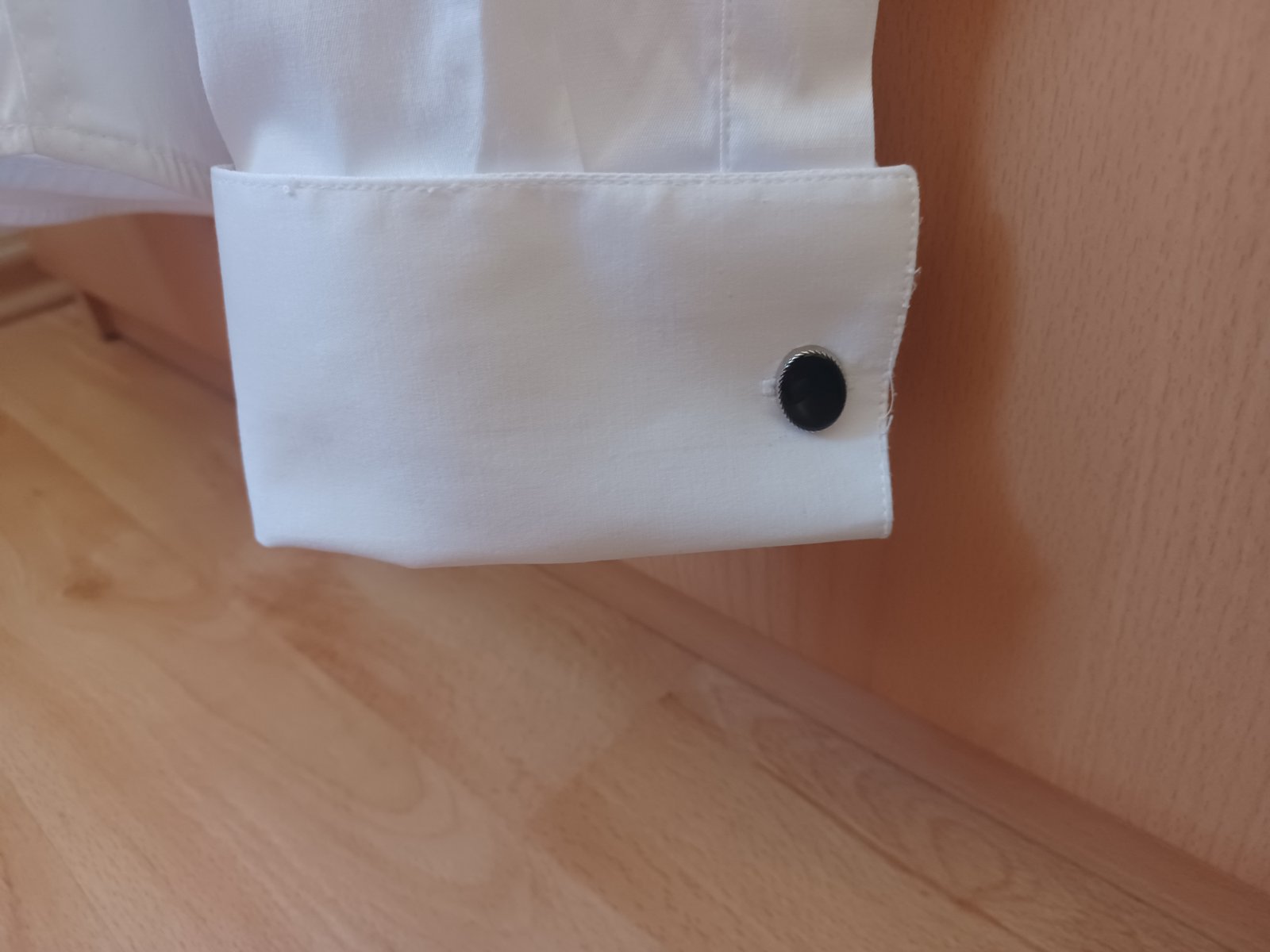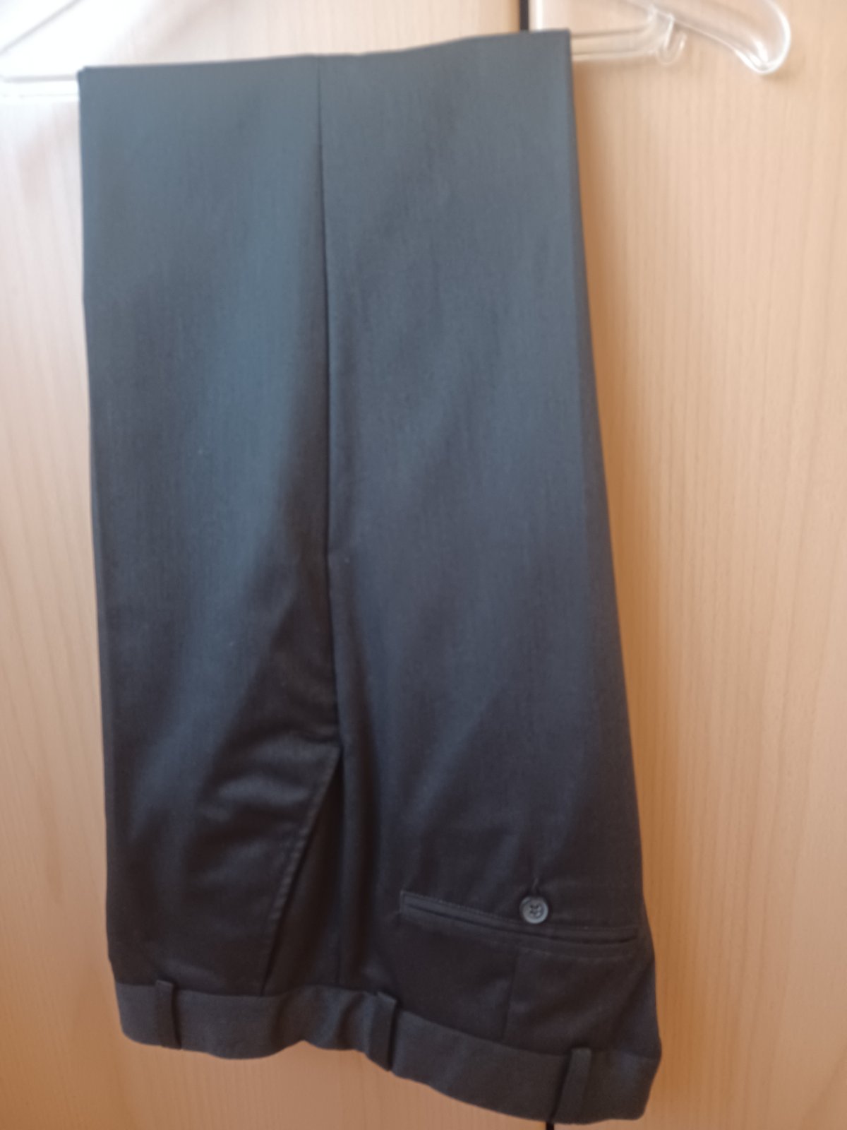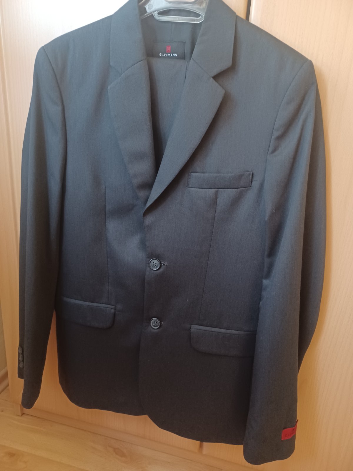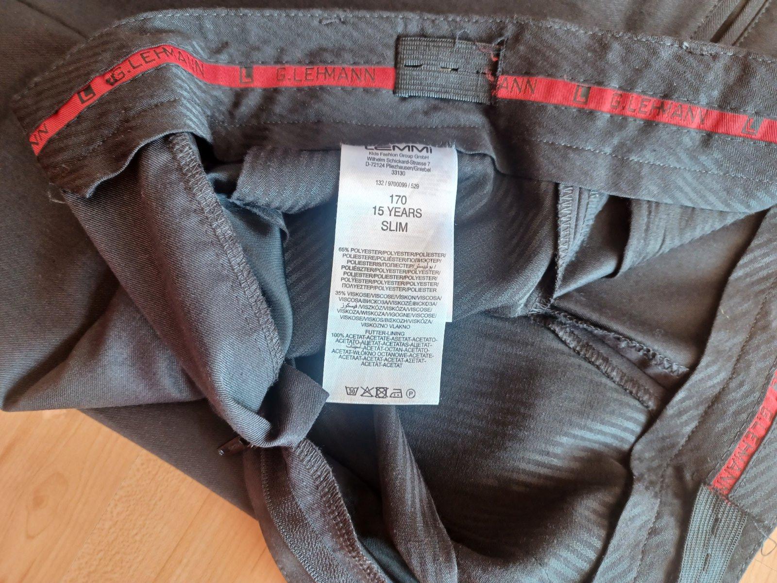 Predám elegantný chlapčenský slim oblek nemeckej značky G. LEHMANN. Oblek v tmavošedej farbe vo veľkosti 170 pozostáva zo saka a nohavíc. Nohavice sú jednoduchého užšieho slim strihu, žehlené na puky, 2 predné vrecká. V páse regulácia. Dĺžka nohavíc sa dá prispôsobiť výške dieťaťa. Saki je tiež šitý v modrenom slim strihu. Je na vyšiu chudšiu postavu. Predávam k tomu aj slavnostnú bielu košeľu s manžetovými gombíkmi. Cena obleku spolu s košeľou je 140 eur. Ak by ste mali záujem iba o košeľu alebo oblek, určite sa dohodneme.