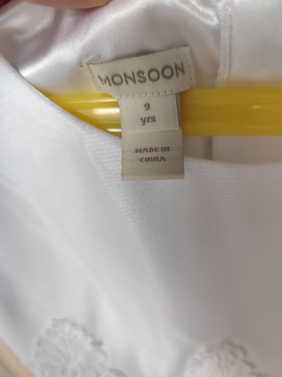 Jemné šatky, top stav, znacka Monsoon, na 9 rokov. Vpredu dlzka 77 cm, vzadu tyl dlhsí 85 cm. Na zips.