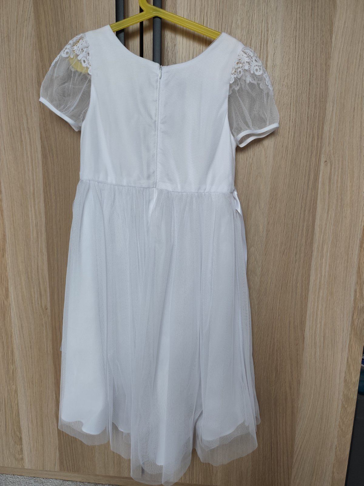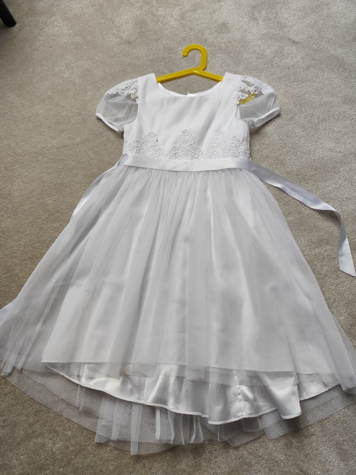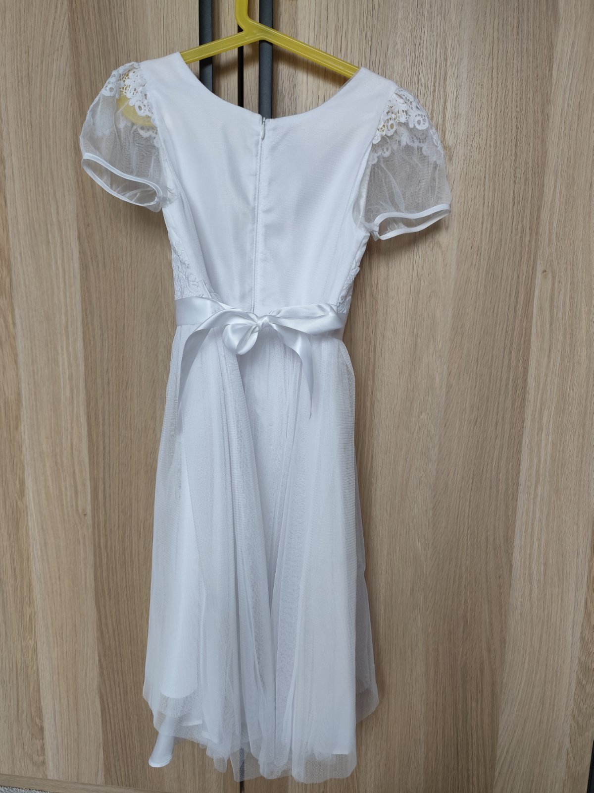 Predám krásne dievčenské šaty na 1.sväté prijímanie, aj s bolerkom. Veľkosť cca 140, dĺžka šiat 120 cm. Dcéra mala 9 rokov keď ich mala oblečené. V skutočnosti sú oveľa krajšie ako zavesené na rami...