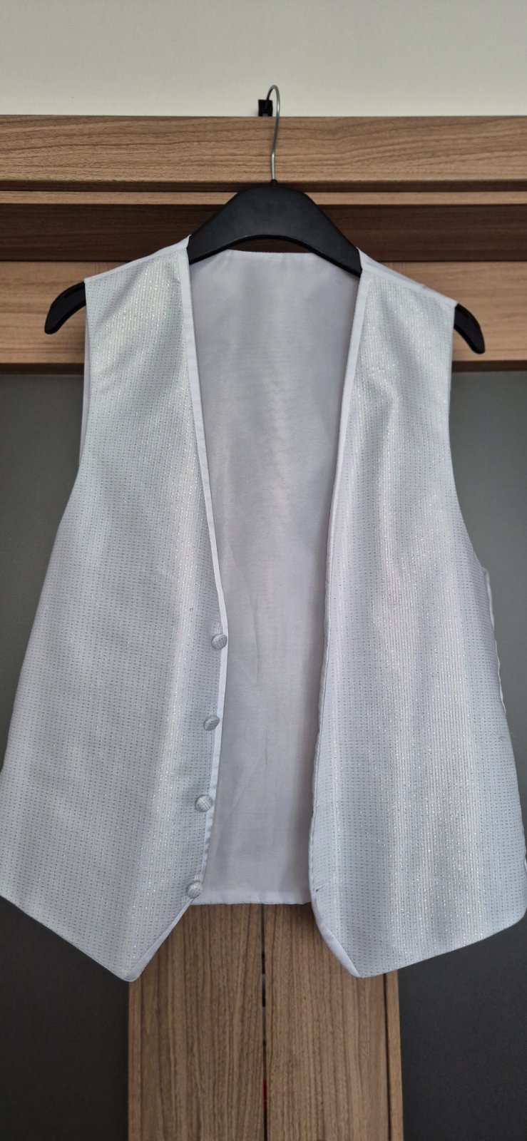 Ponúkam na predaj veľmi kvalitný a málo nosený pánsky oblek. Tmavošedá lesklá farba, veľkosť 48 - slimfit (výškovo približne na 165 cm). Bol využitý ako svadobný oblek, ponúkam k nemu bielu košeľu, kravatu a vestu. Dá sa využiť aj ako oblek na stužkovú alebo inú príležitosť a vďaka príjemnej farbe je kombinovateľný s rôznymi košeľami a kravatami. Nosený minimálne, ako nový. Ako bonus ponúkam dve sady krásnych manžetových gombíkov. Cena 50€/komplet.