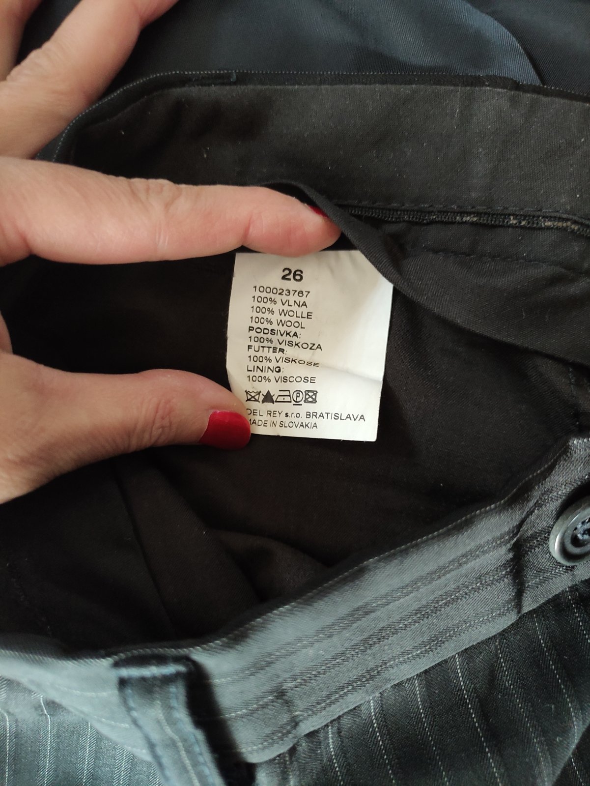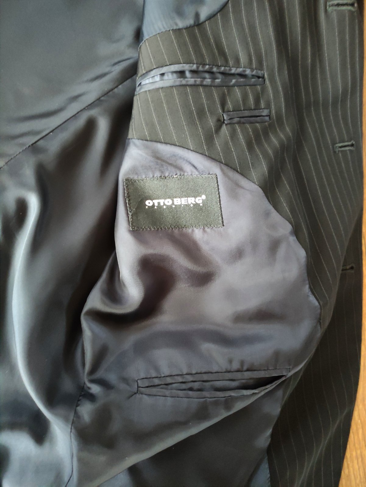 Oblek je bez vesty(sako,nohavice) je na štíhlu,vysokú postavu.Nohavice majú pás 39cm a dĺžku od rozkroku dole 80cm.Sako má dĺžku 80cm a šírku 51cm.