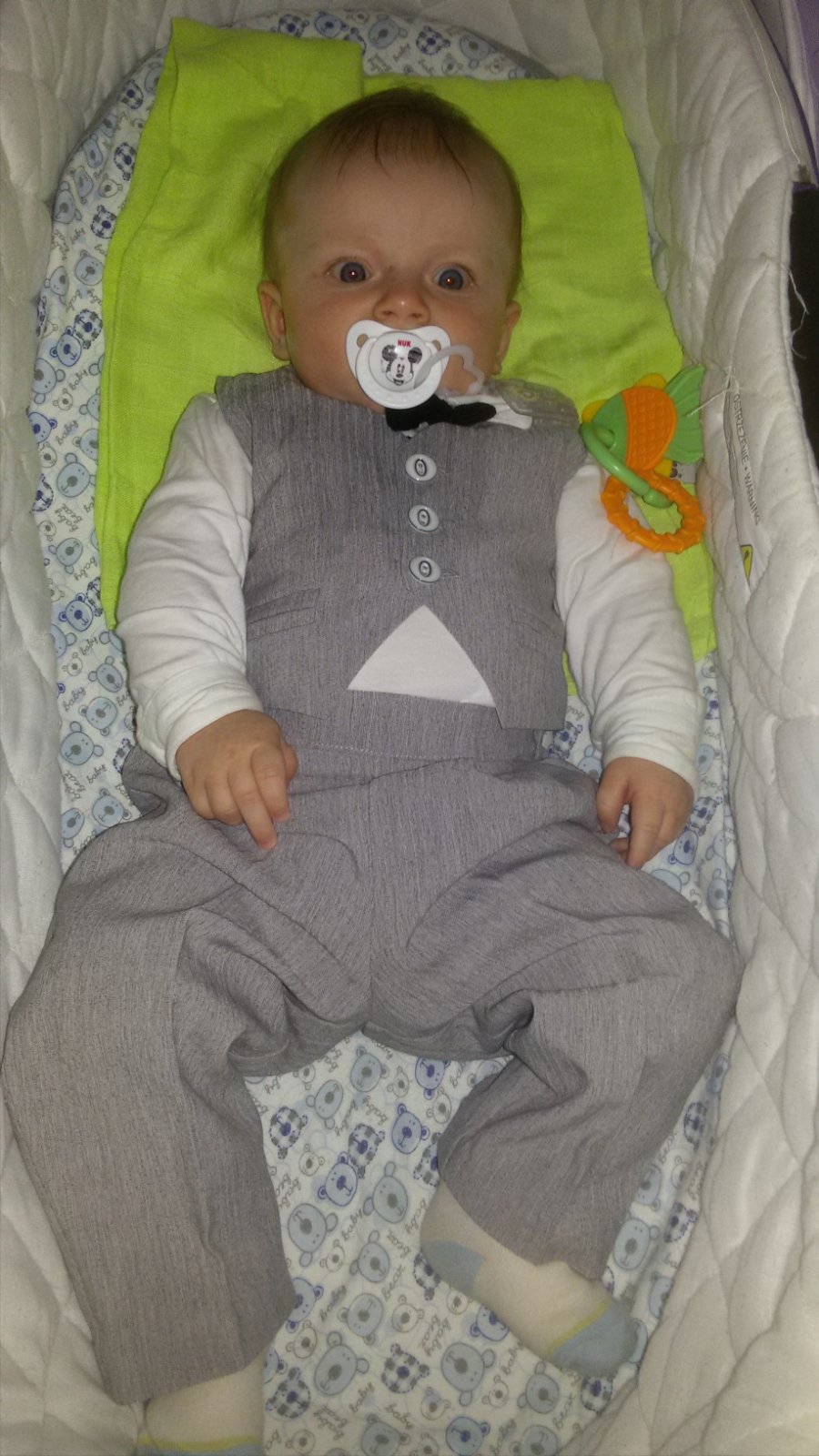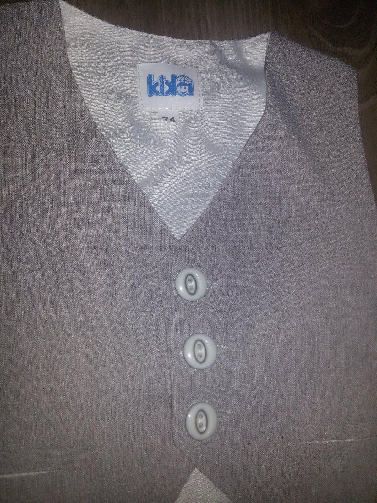 Predám set nohavice s vestickou pre chlapčeka na slávnostnú príležitosť. Veľkosť 68, 74. Oblek je nepoškodený, top stav. Kúpený mnou v detskom obchode. Vzadu pás na gumičkou. Pás 20 cm v neroztiahnutom stave. Celková dĺžka nohavíc 40,5. Vnútorná dĺžka 25,5 cm. Vestička sa vzadu reguluje. Suma už s obačajnou poštou.