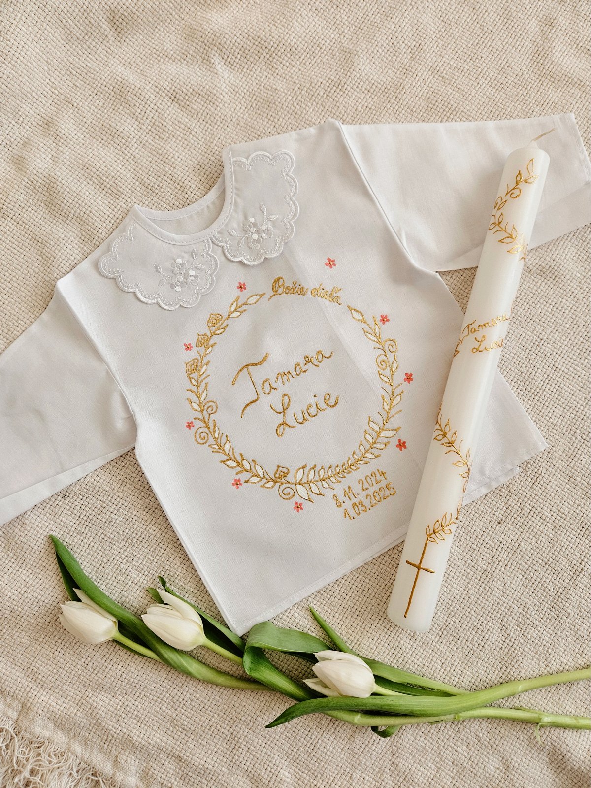Ručne maľované krstné košieľky a sviečky. Maľujem aj na želanie. Doba dodania cca do týždňa.