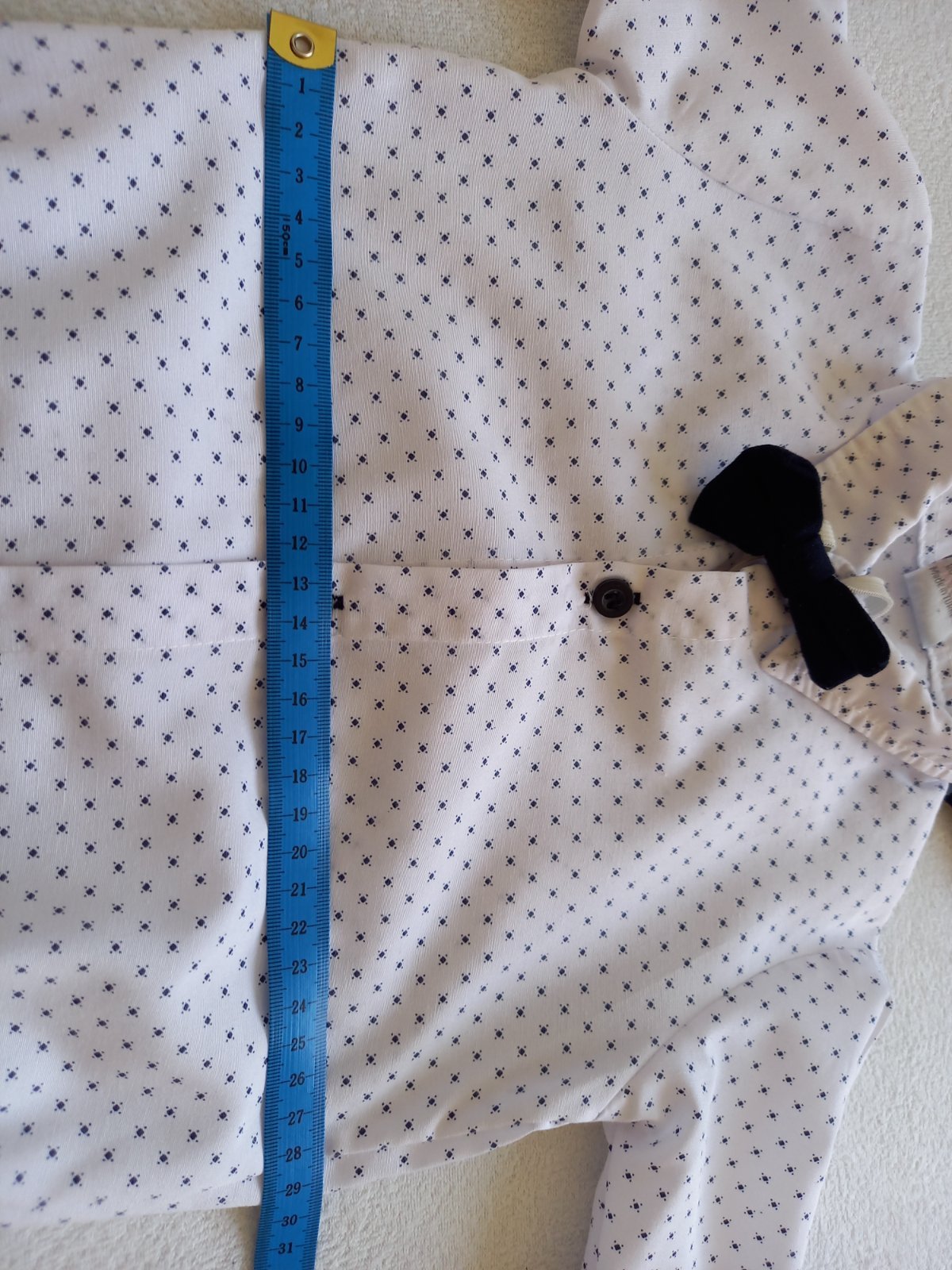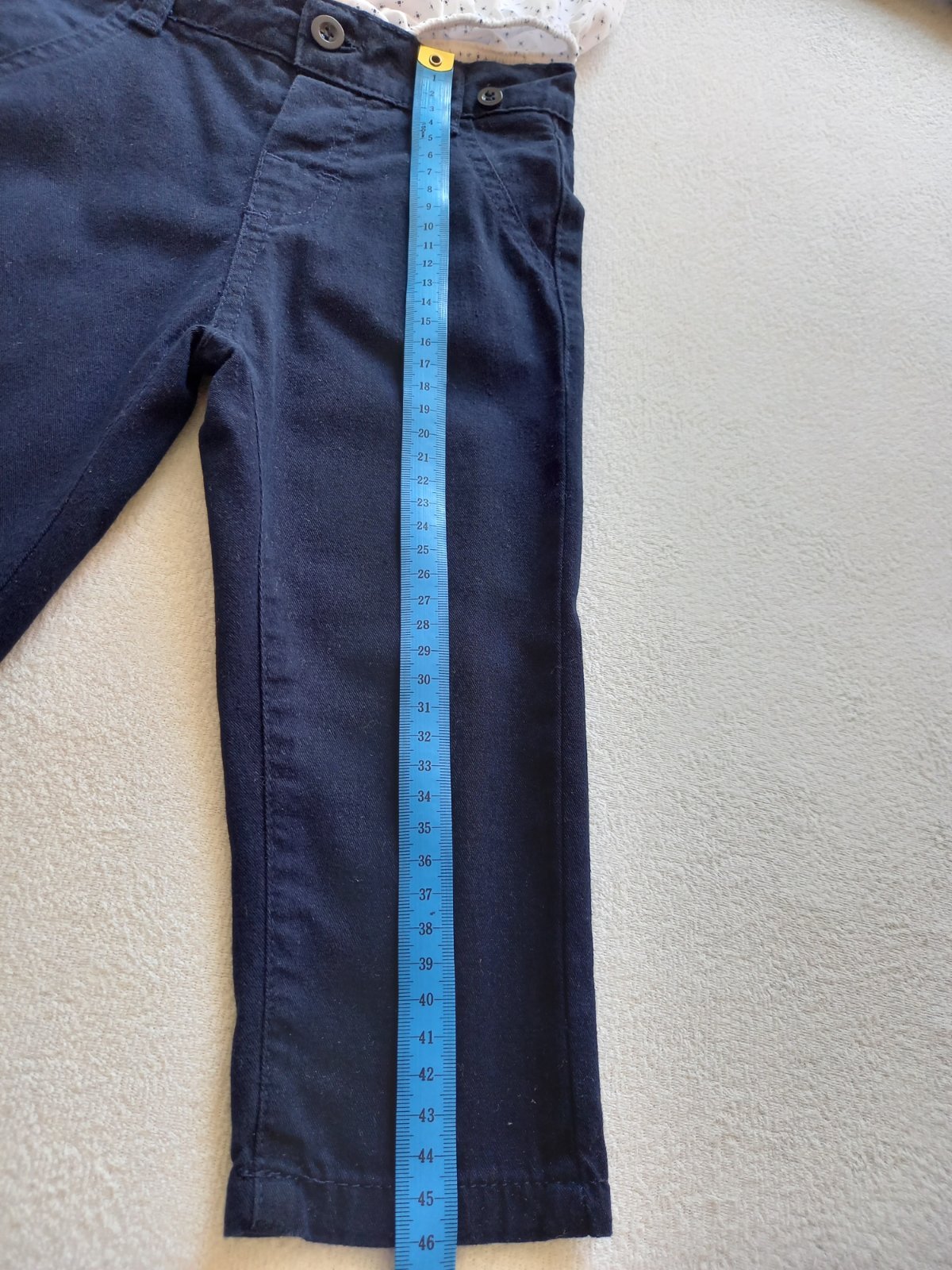 Predam detsky oblek (biela kosela dlhy rukav, kravata, modra vesta a dlhe nohavice). Kupene ako set. Vek dietata je uvedeny 2 roky, ale kludne aj od 18 mesiacov do 2 rokov. ROZMER: 1. Dlzka nohav...