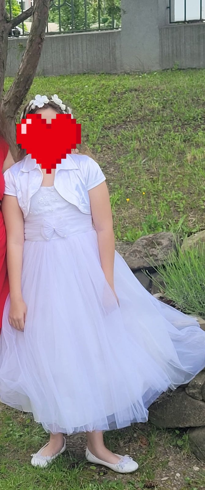 Predám po dcére niesom si istá veľkosťou ale rada premeriam pri záujme ...mám ktomu aj krásnu čelenku z bielych kvetov a darujem ktomu aj dva bolerka biele