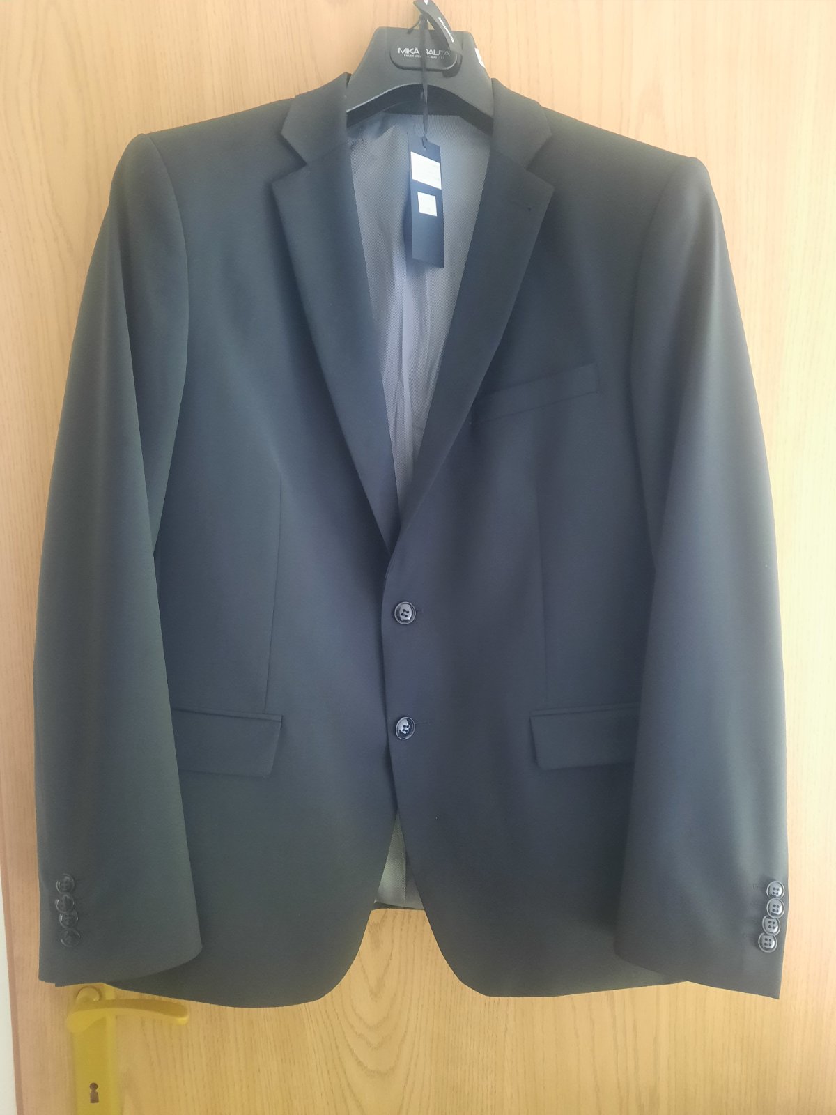 2x oblečený, bez poškodenia. Kvalitne vypracované.Sako podšité, 4 vnútorné vrecká.Veľkosť nohavíc 27. Dľžka 104cm/82cm pás 103, boky 118-119cm, predný sed 26cm, zadný sed 41cm. Sako v.26. Dĺžka 73cm, šírka chrbta 46cm, šírka saka 56cmx2, rameno 15,5cm, rukáv 64cm. Pôvodná cena 179€