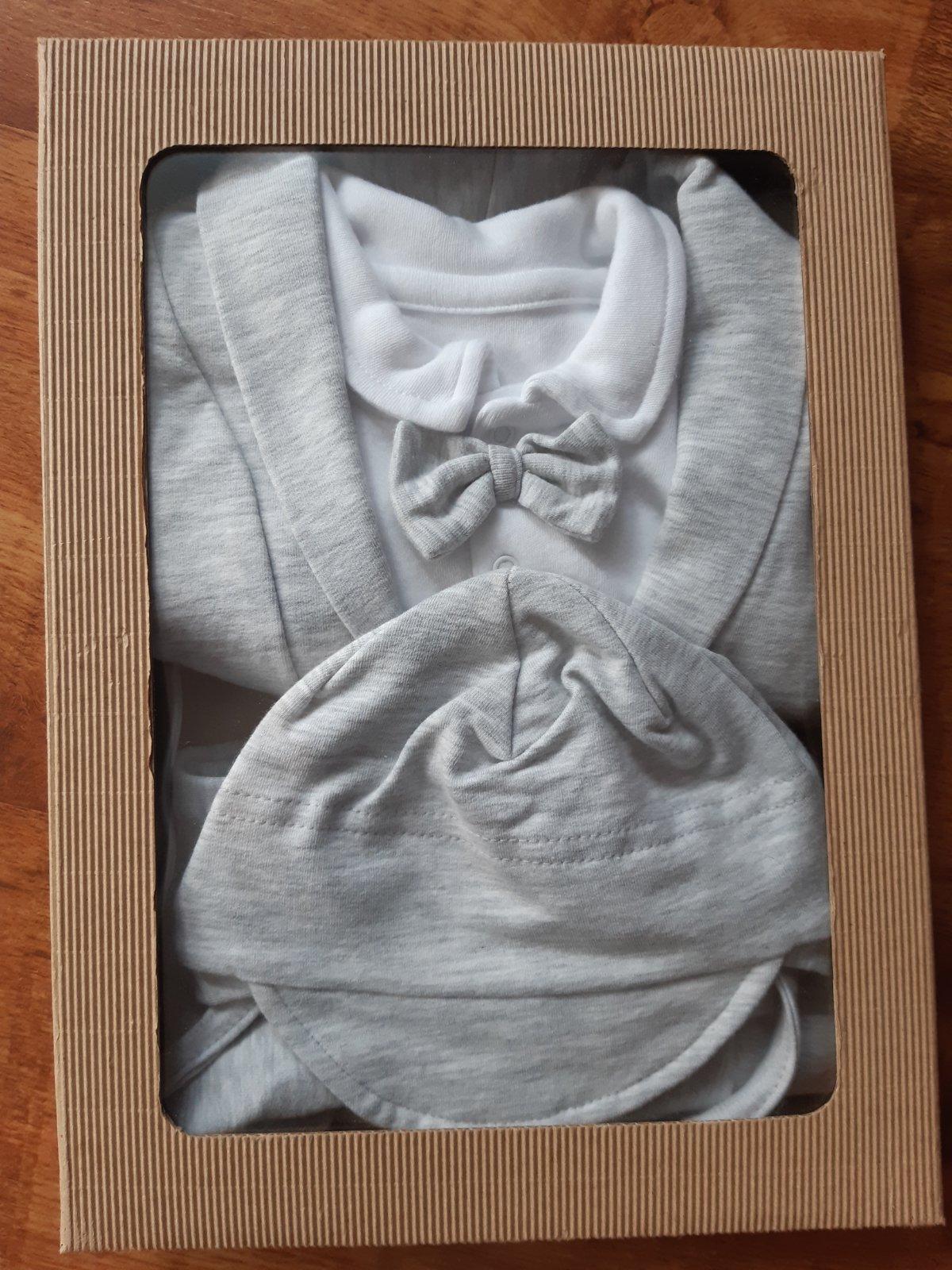 Set na krst, svadbu...kupovaný nový, kvalitný materiál, 2x oblečený, je v top stave ako nový. PC bola 25 Eur. Písaná je veľkosť 68, ale kľudne aj od veľkosti 62. Syn mal cca 62 cm a cez 6 kg, hlávku mohol mať 41-42cm a pekne mu všetko sedelo.