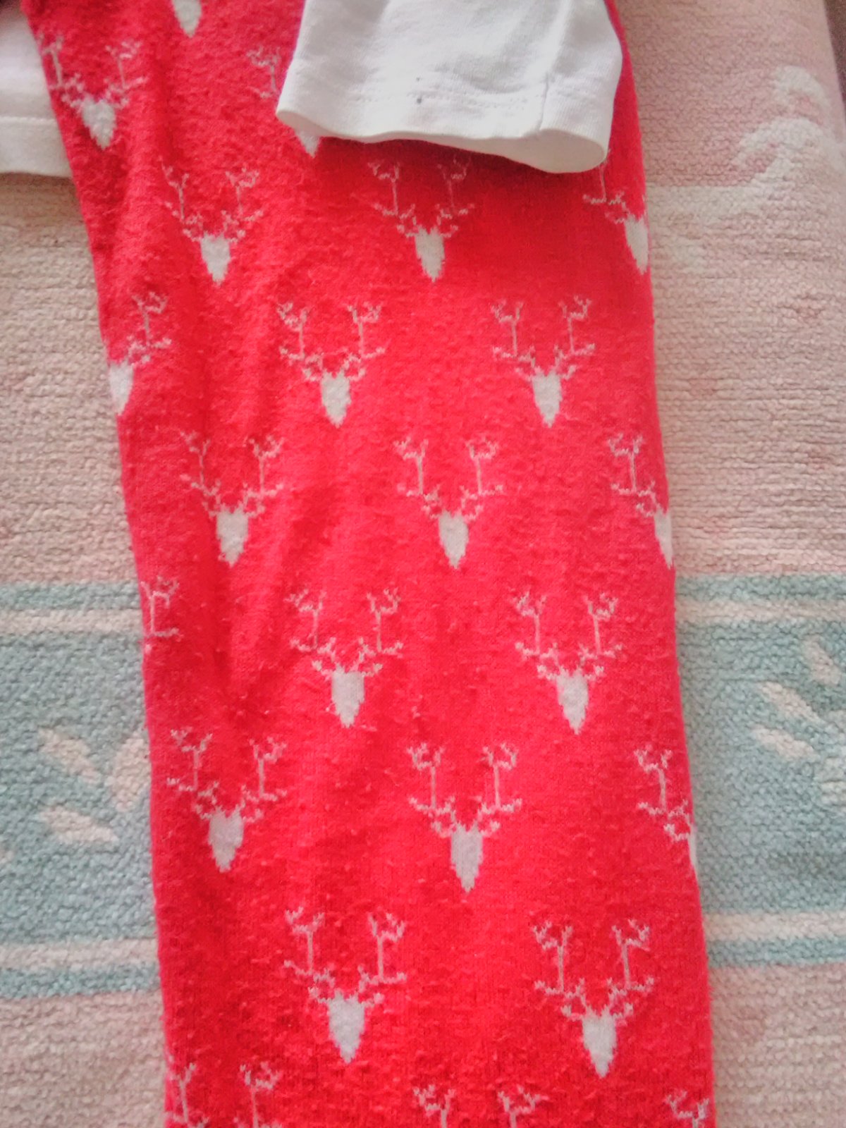 Tričko a legíny rôznych značiek ale nosené spolu s vianočným motívom. Pár bodiek malých fliacikov na bielom tričku a zmolky na legínach viď foto. Predávam spolu.
