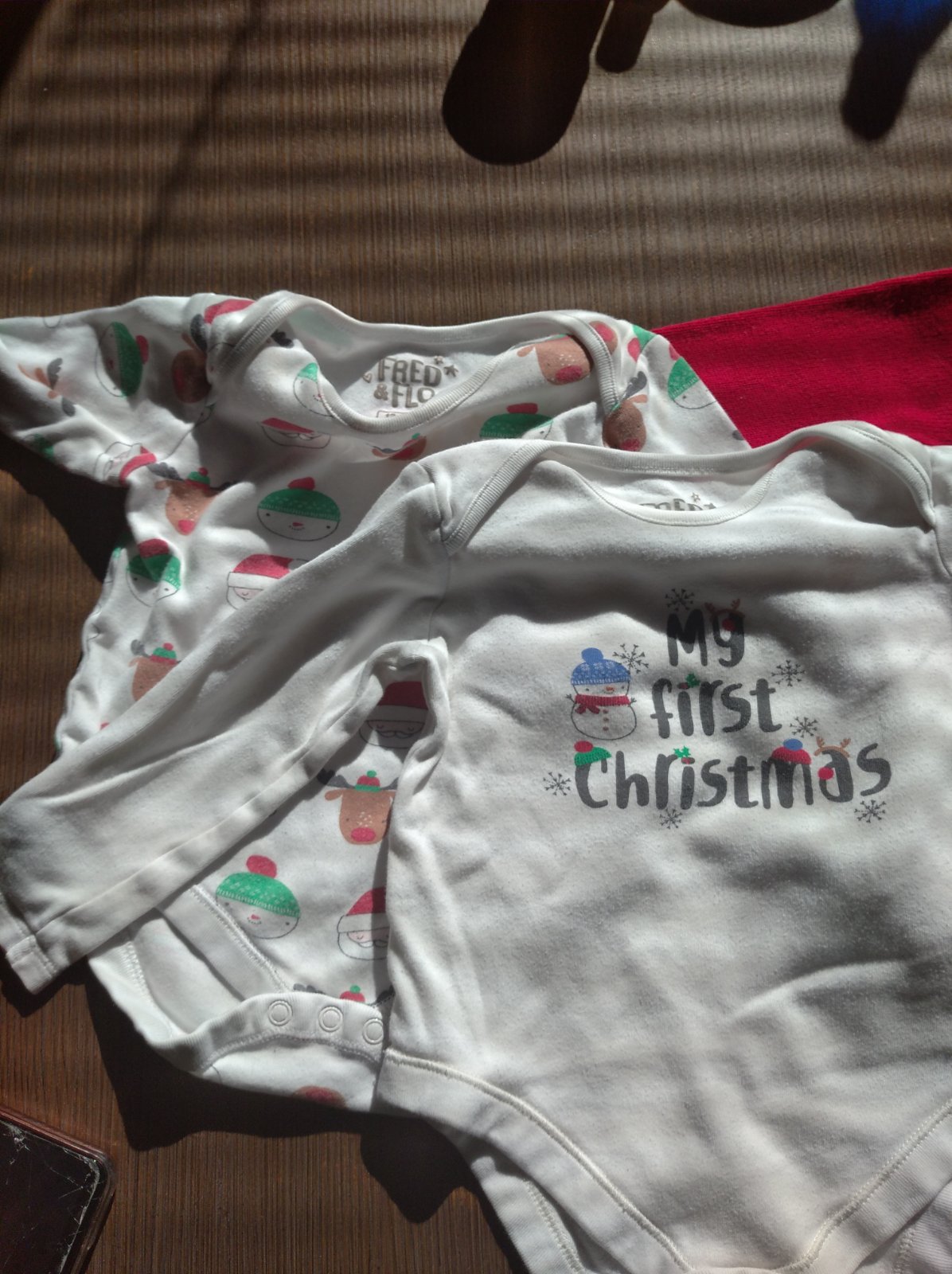 Bez poškodenia, nosene, pribalim k tomu dvoje body nosené vianočné, majú dva fľaky a zmolky veľ. 12 až 18 mes, ale sú menšie